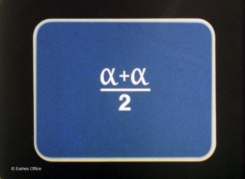 One of a series of three films on mathematics conceived and produced by the Eames Office with Ray Redheffer, professor of Mathematics at UCLA. A stop-motion animation film, it begins with an algebraic expression, elaborates on it, and then reduces it to its original form. Told without narration, the film was designed to be supplemented with the explanation of the classroom teacher. Columbus International Film Festival Bronze Chris Plaque Award-C, 1975.