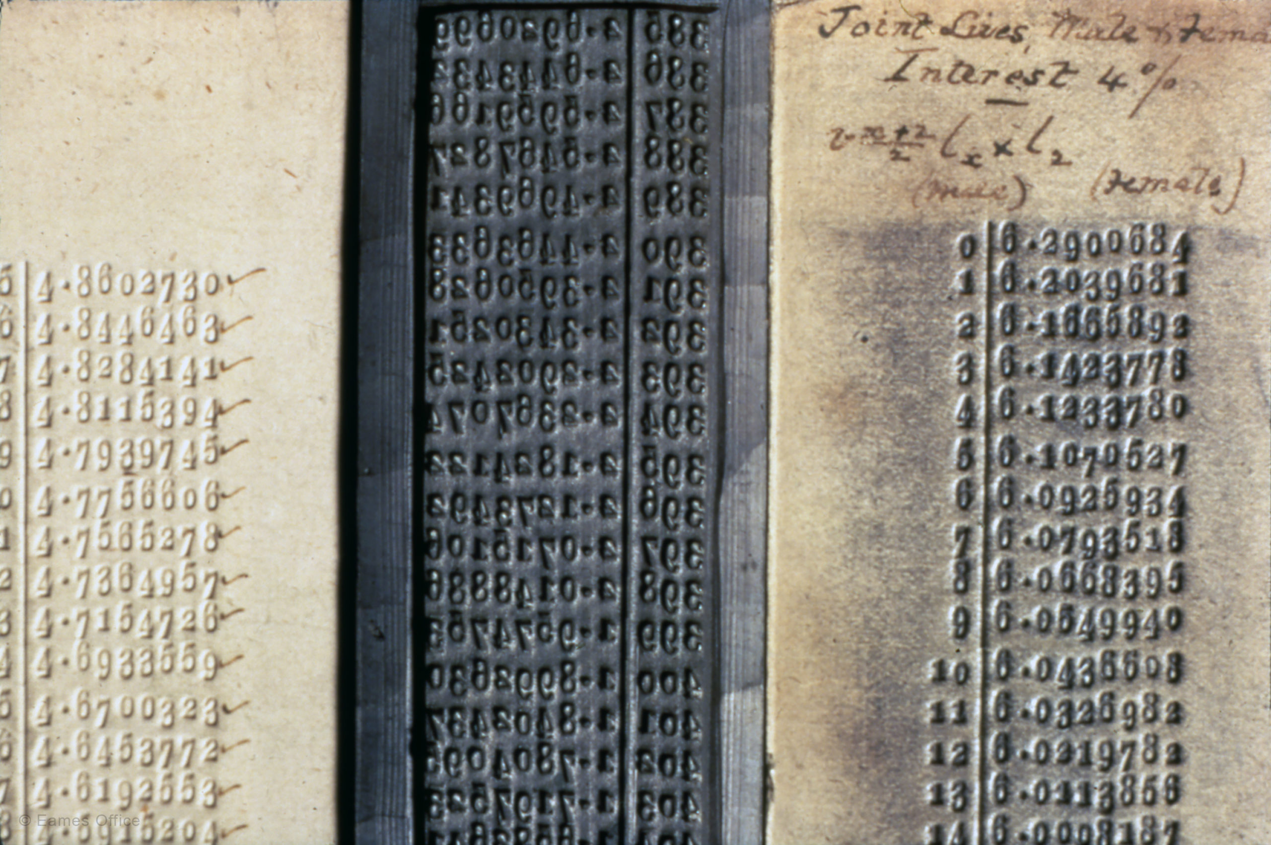 The Eames Office worked on this project for the Computer Origins section of the proposed IBM Corporation Museum. Charles, assisted by Bruce Collier of Harvard University and staff member Parke Meek, filmed the machine in the Science Museum in South Kensington, London, where it is housed.