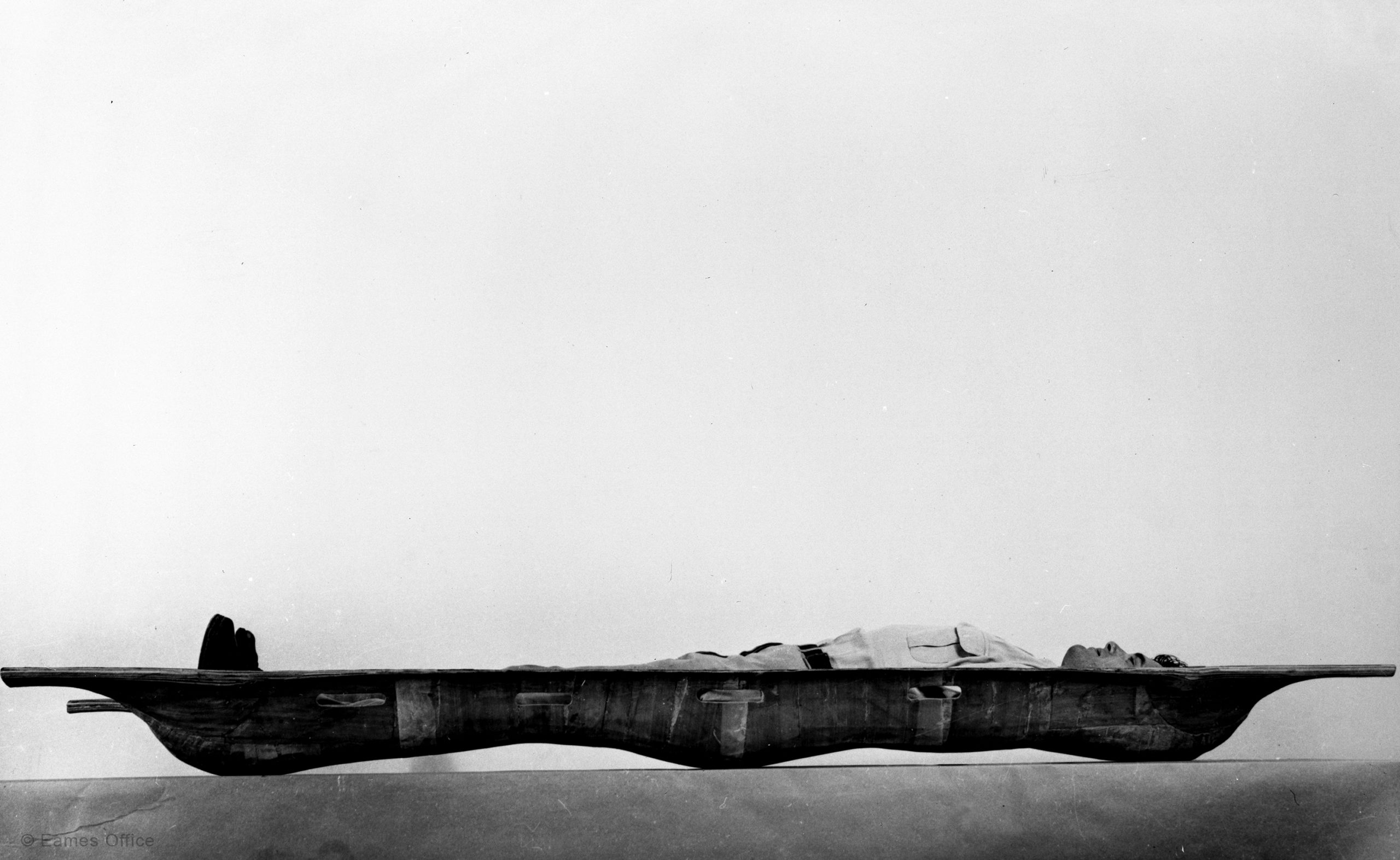 The design led to other wartime molded-plywood work as well, including an airplane fuselage, airplane stabilizer tail, an arm splint, a body litter, and a pilot seat. Like the molded plywood arm splint, the Eameses designed and prototyped the body litter for the U.S. Navy that never went into production.