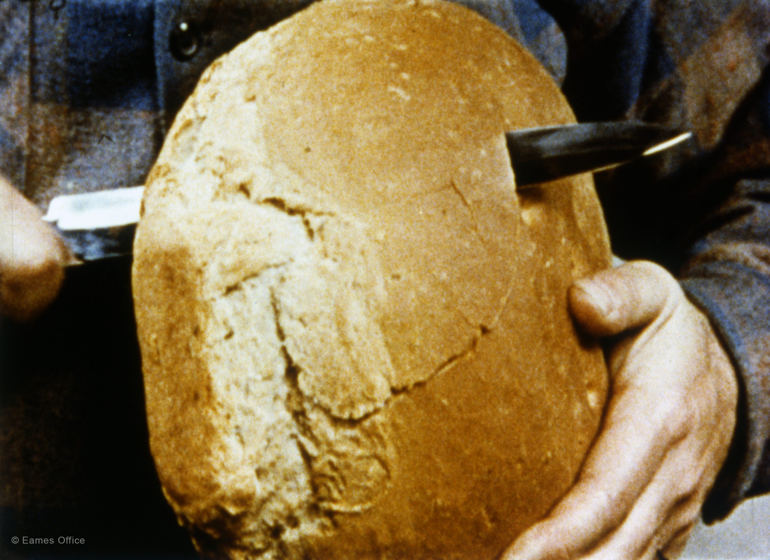 In the words of Charles Eames, this film examines the subject of bread from a variety of standpoints – “The way bread is used in nutrition, bread as an art, bread as a political tool, bread as a symbol.” Live-action shots of the different shapes, forms, and ethnic varieties of bread are accompanied by the Sonata a Cinque by Malipiero and Trio for Violin, Cello and Harp by Jacques Ibert.