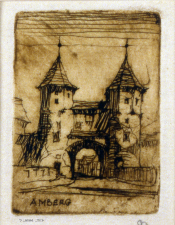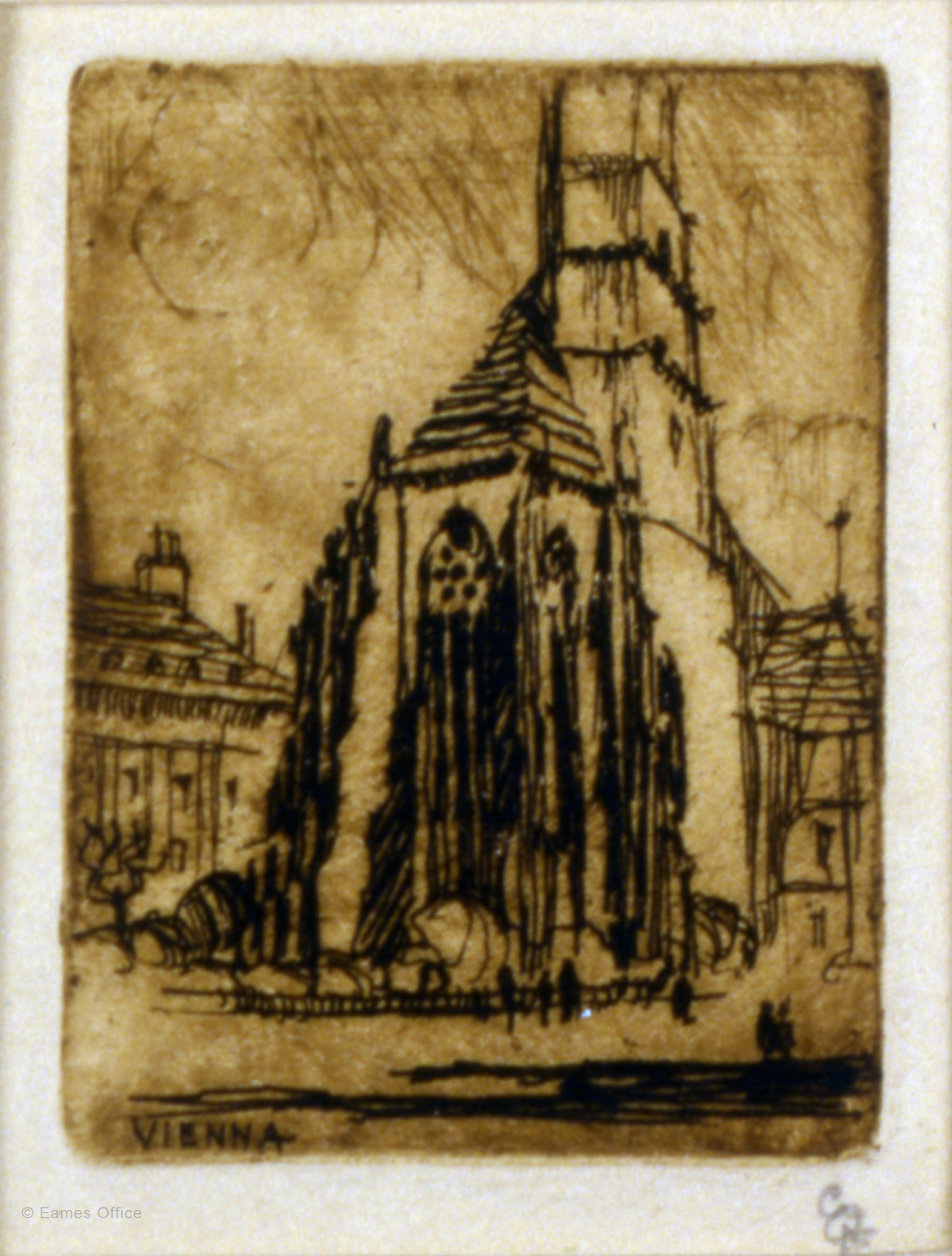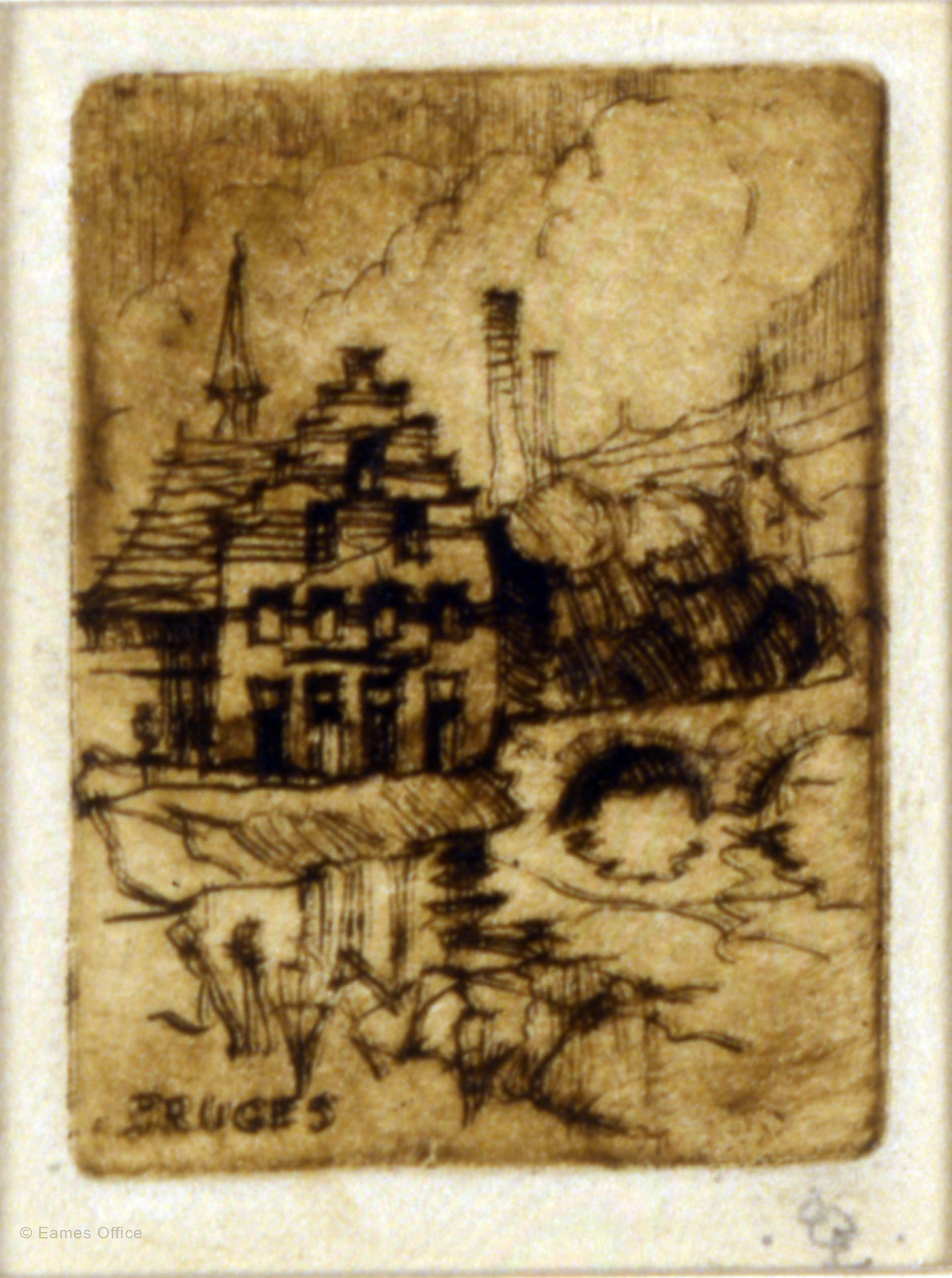 These etchings exemplify the variety of buildings that Charles and his first wife, Catherine Dewey Woermann, saw in their travels throughout Europe while on their extended honeymoon in 1929. The pair visited England, Germany, and France—as can be deduced from these works—but also a number of cities in Italy.