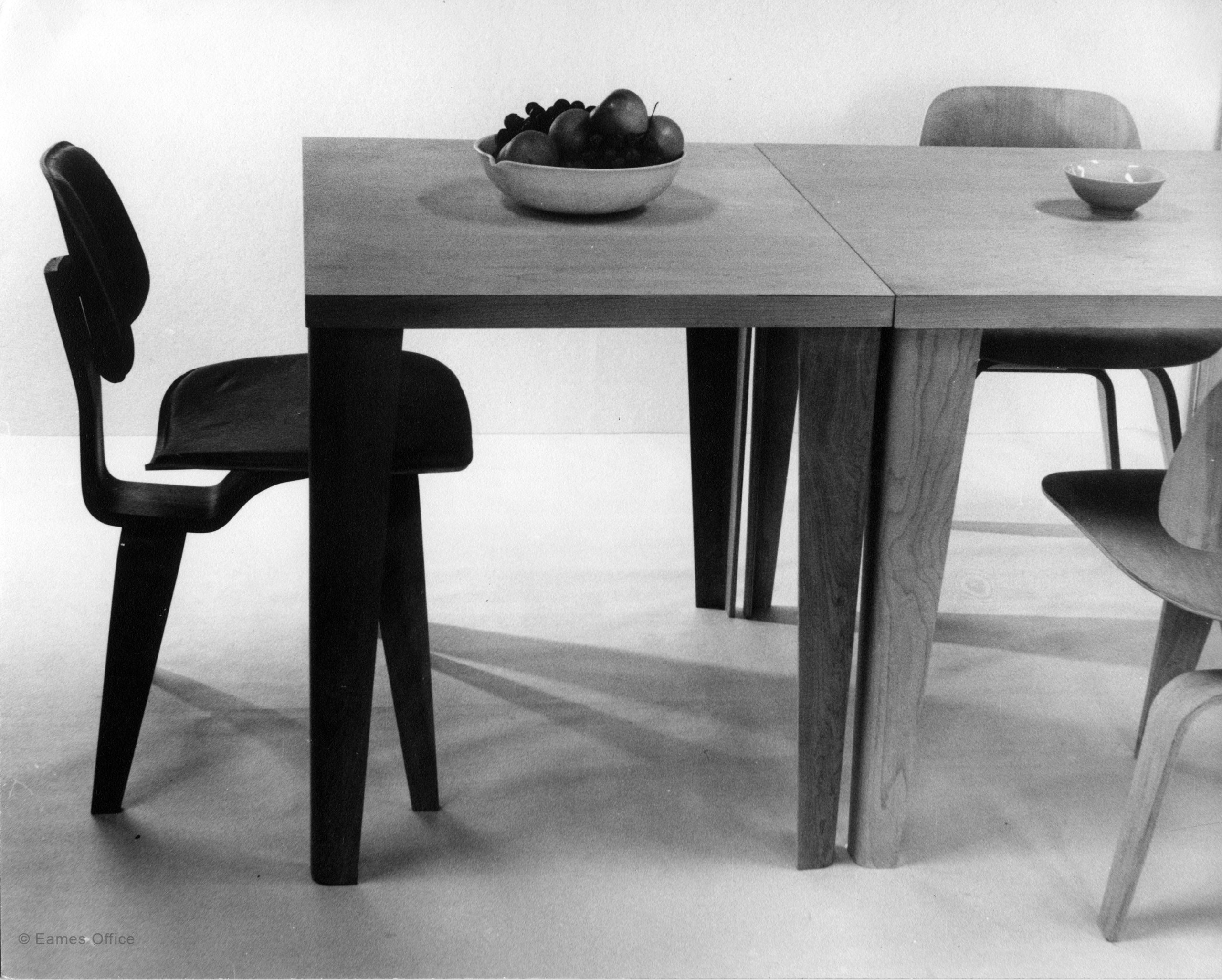 Charles and Ray developed the DTW as a product of their process of developing their molded plywood chairs. In their exhibitions of the Eames molded plywood group in 1945 and 1946, two types of bent plywood tables were on display.