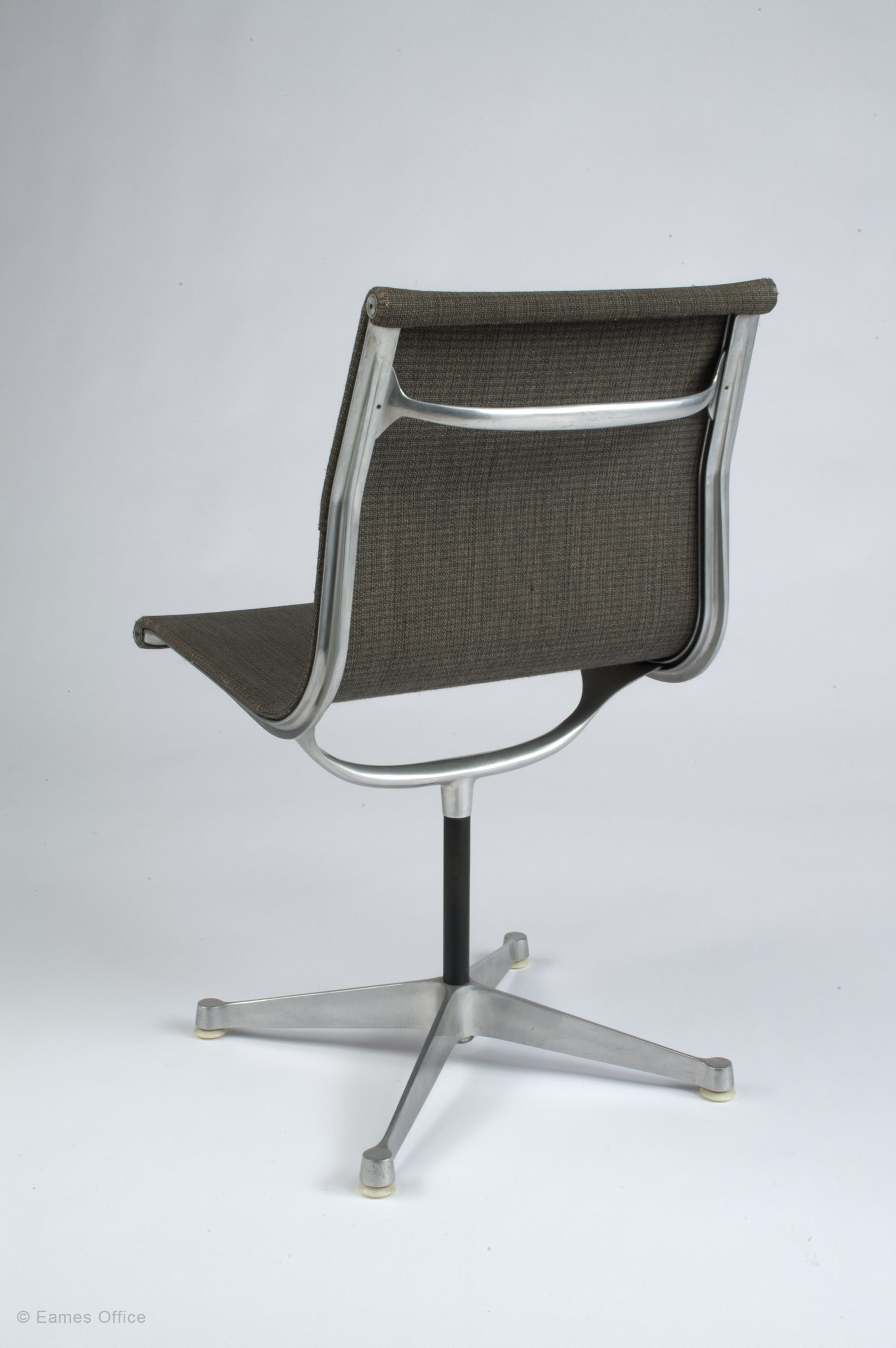 Charles and Ray had used aluminum in earlier chair and table bases and had also experimented with stamping chair shells out of aluminum sheets for the Low-Cost Furniture Design competition; however, the Eames Aluminum Group marked their first use of the material for structural side members and represented a major departure from the concept of the chair as a solid shell.