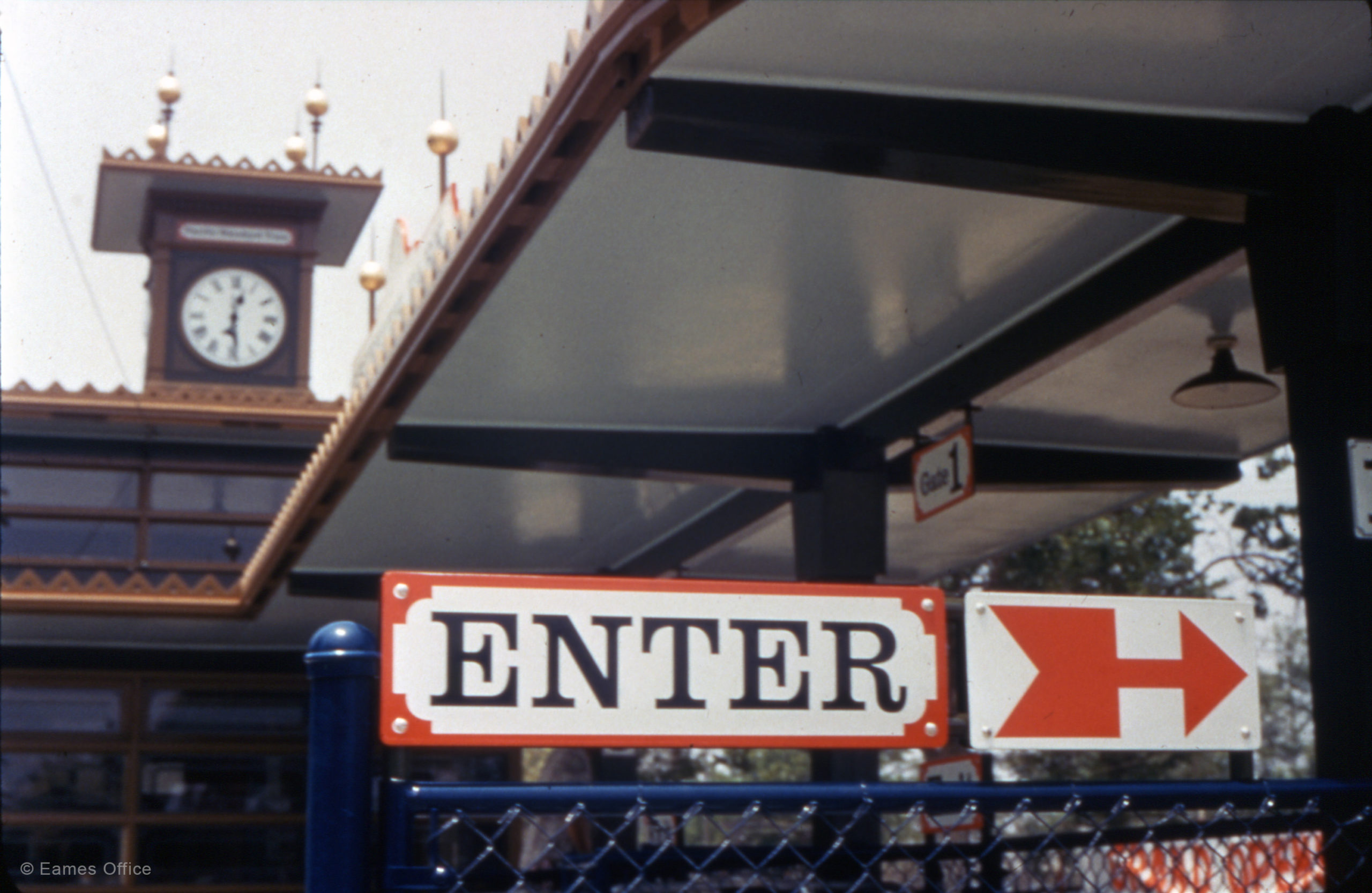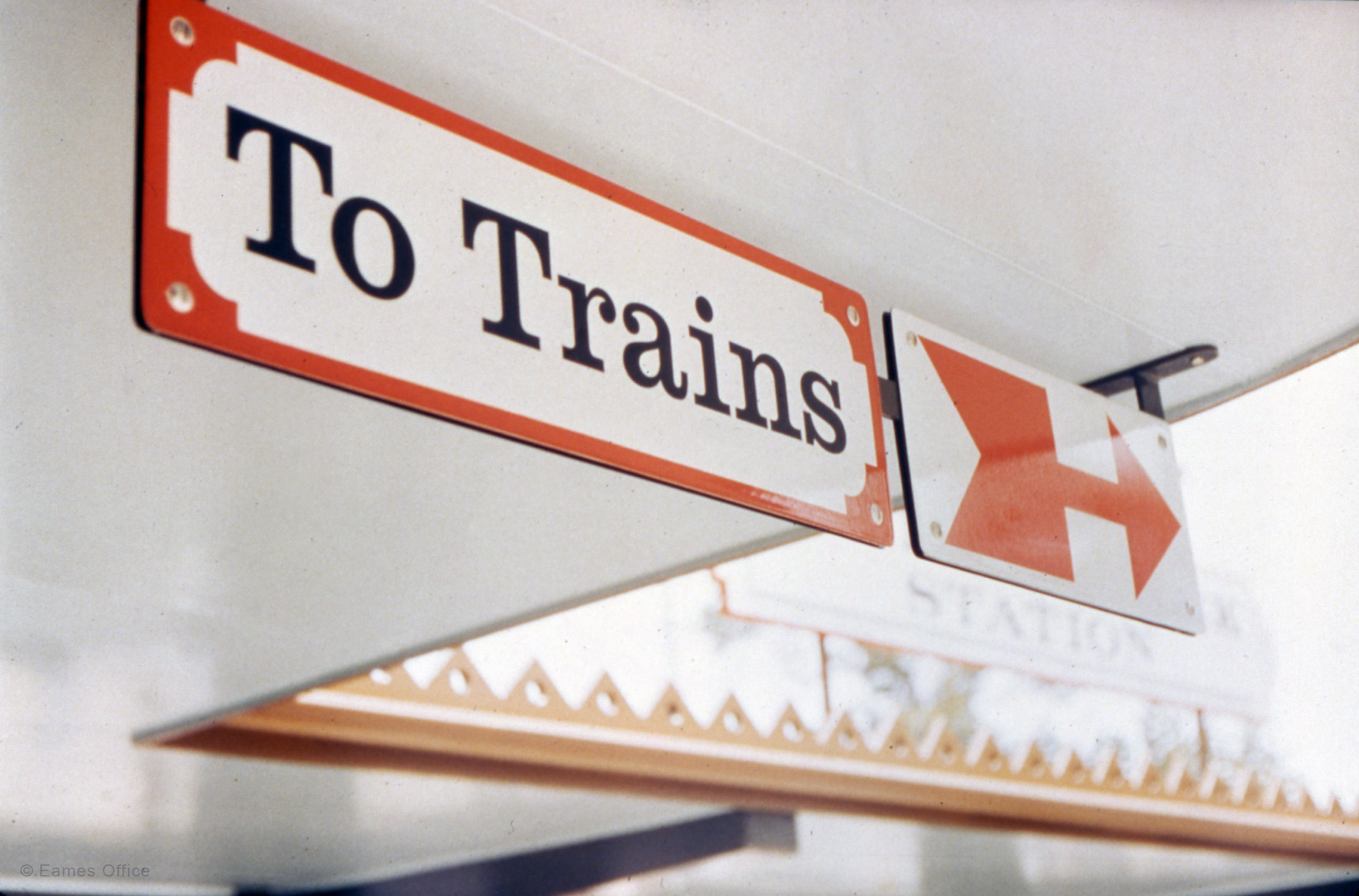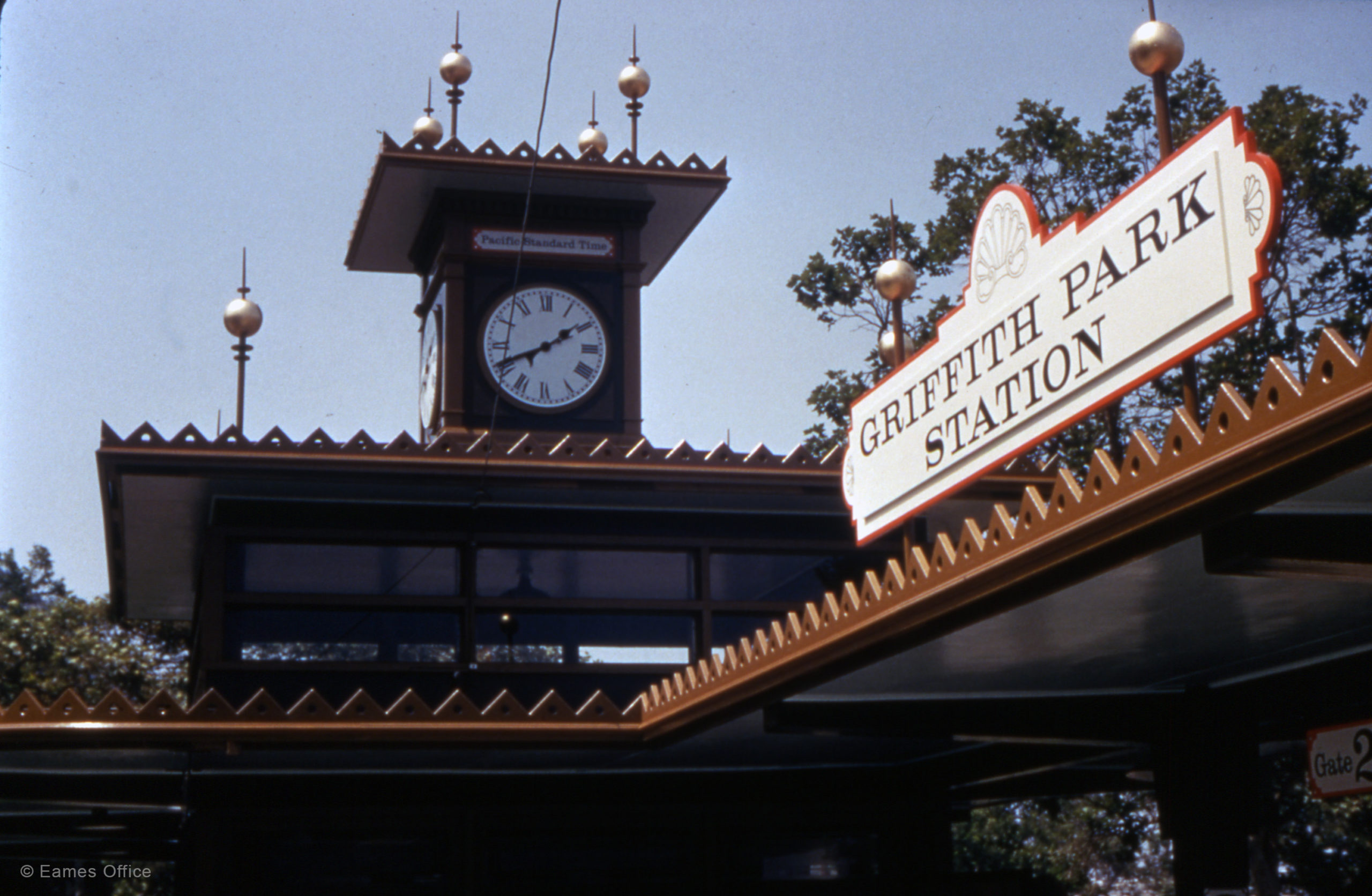 Communication | Graphic Design Griffith Park Railroad Graphics In 1957, the Eames Office designed the buildings and graphics for Griffith Park Railroad, a miniature children’s play area in Los Angeles, California.