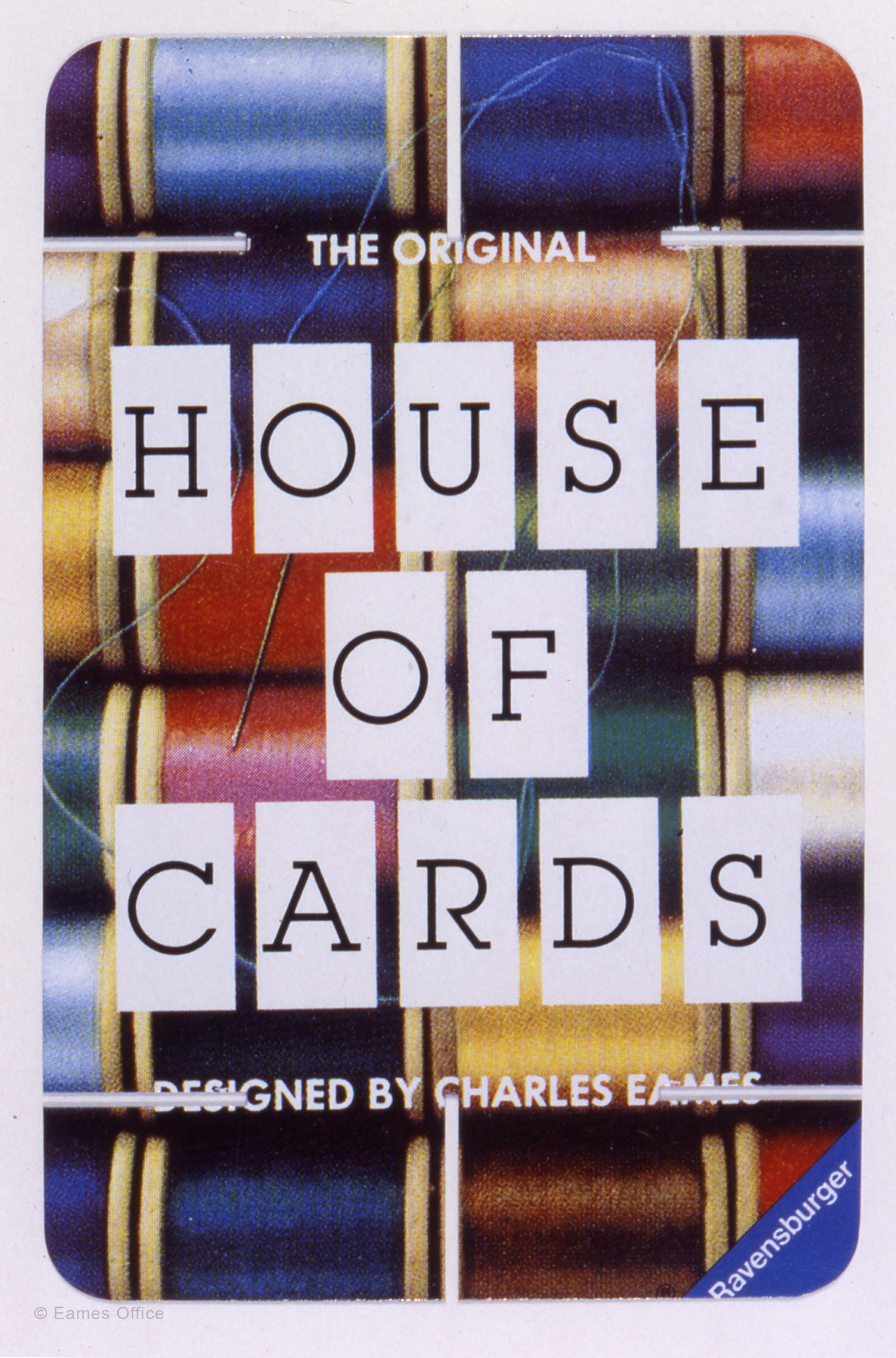 The Eameses designed the original House of Cards in 1952, exemplifying the design duo’s appreciation for the uncommon beauty of common things. The deck consists of fifty-four playing-sized cards, each card with six slots, two on either side and one at both ends, so they may be locked together to create three-dimensional structures.