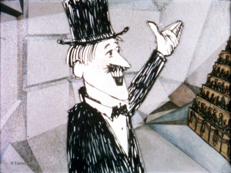 Created to present the concept, overall architecture, and look of the original proposal for the IBM Pavilion at the 1964-65 New York World’s Fair. Using both photography and animation, the film begins with a view of the actual fair site at Flushing Meadows, New York, and then examines the Eames Office model of the IBM Pavilion.