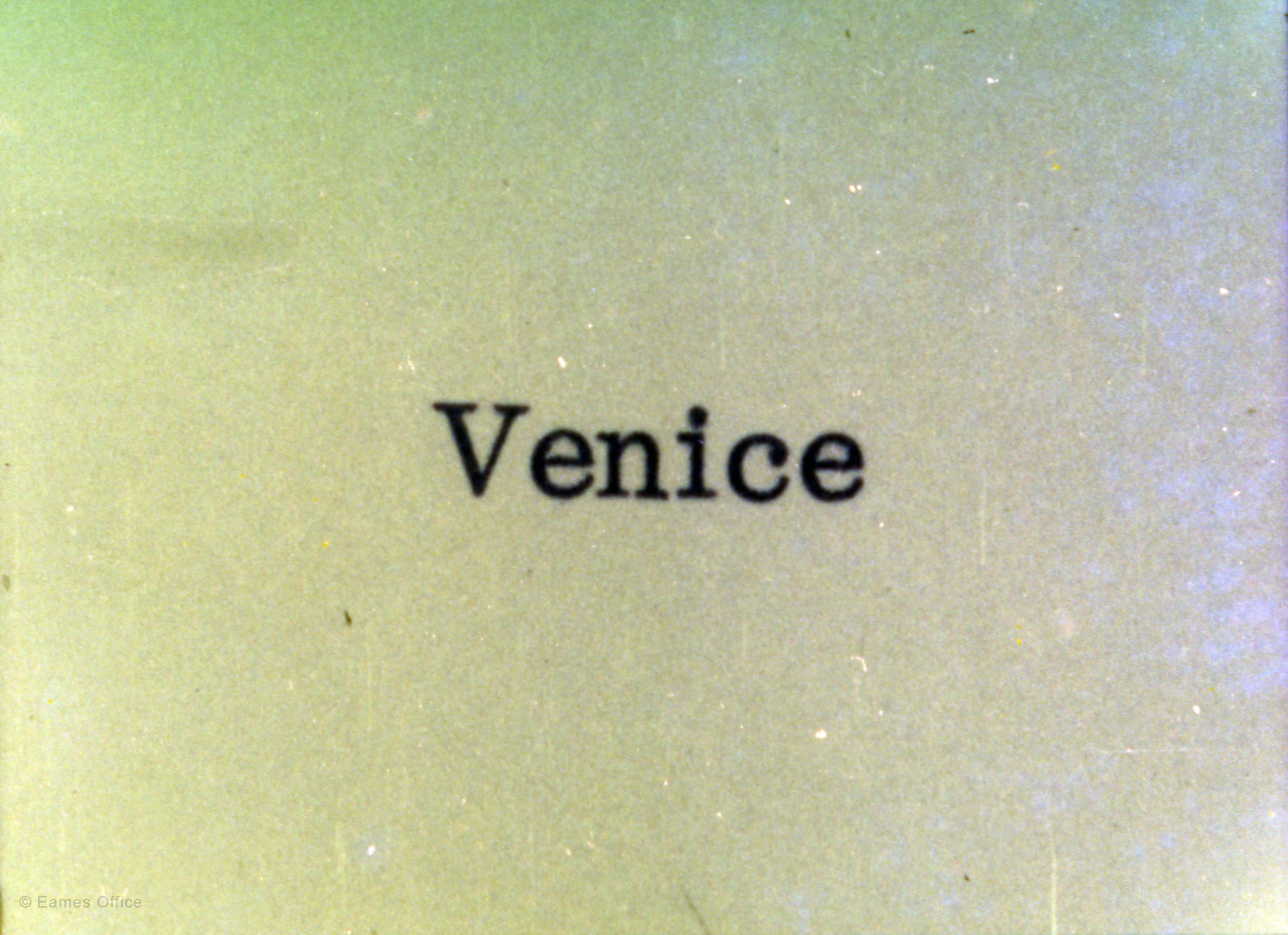 Shot with a camera developed by the Eames Office, and outfitted with a special system of mirrors that was designed to shoot kaleidoscopic images, this film opens with a single view of a desk in the Eames Office reception area. The camera then pans horizontally across the reception office and the scene dissolves into a kaleidoscopic image, beginning a tour through the rest of the building, including graphic layout rooms, film production spaces, offices, and the furniture development and tool shop.