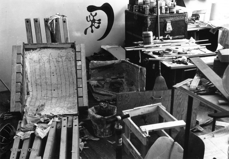 In his book An Eames Primer, Eames Demetrios says of the Eames Kazam! machine, “It had a curving plaster mold with energy-guzzling electrical coils running through it. Charles long remembered the terror of climbing a power pole by their apartment to poach enough electricity from the transformer to run the Kazam! machine, and the growing conviction he would electrocute himself.”
