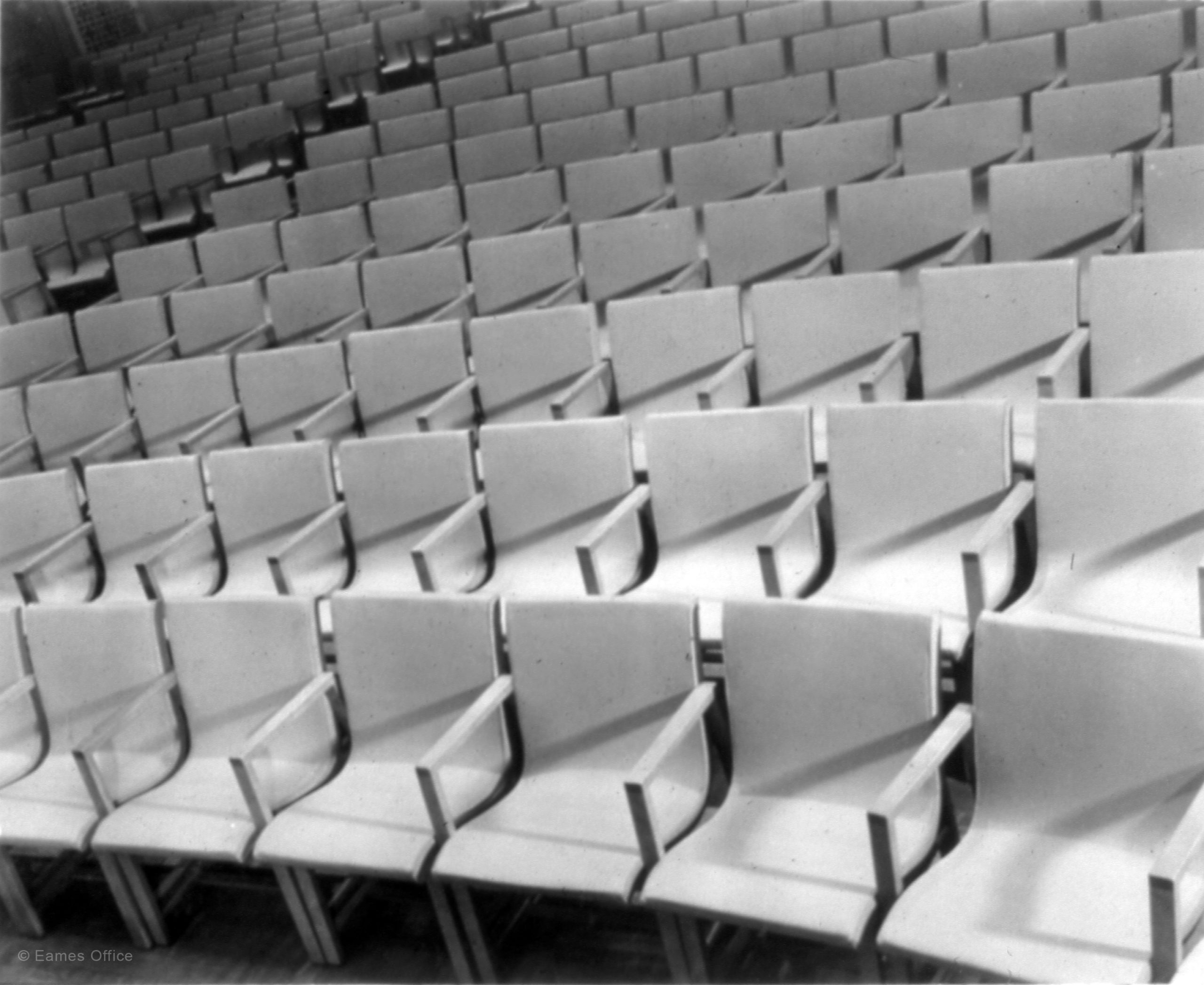 Eero Saarinen and his best friend, Charles Eames, co-designed the seating for this auditorium. The following account of this work is detailed in An Eames Primer.