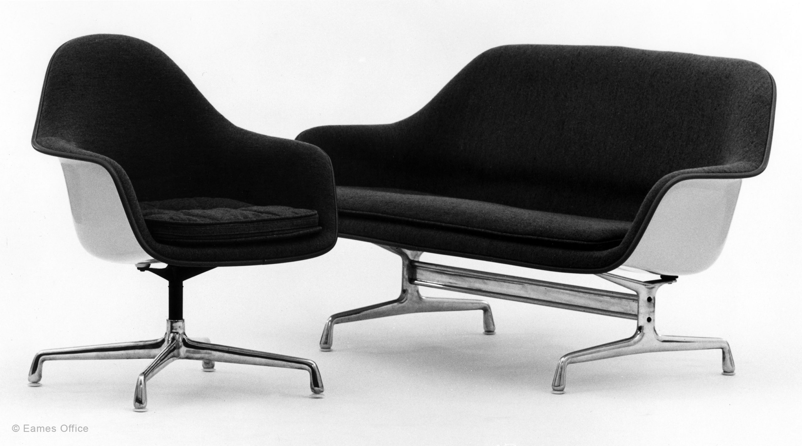 The Eames Loose Cushion Arm Chair was introduced in 1972, just as the Museum of Modern Art was preparing the major exhibition “Charles Eames Furniture in the Collection of the Museum of Modern Art.” In this exhibition, the chair was praised for its technical sophistication and innovative manufacturing techniques.