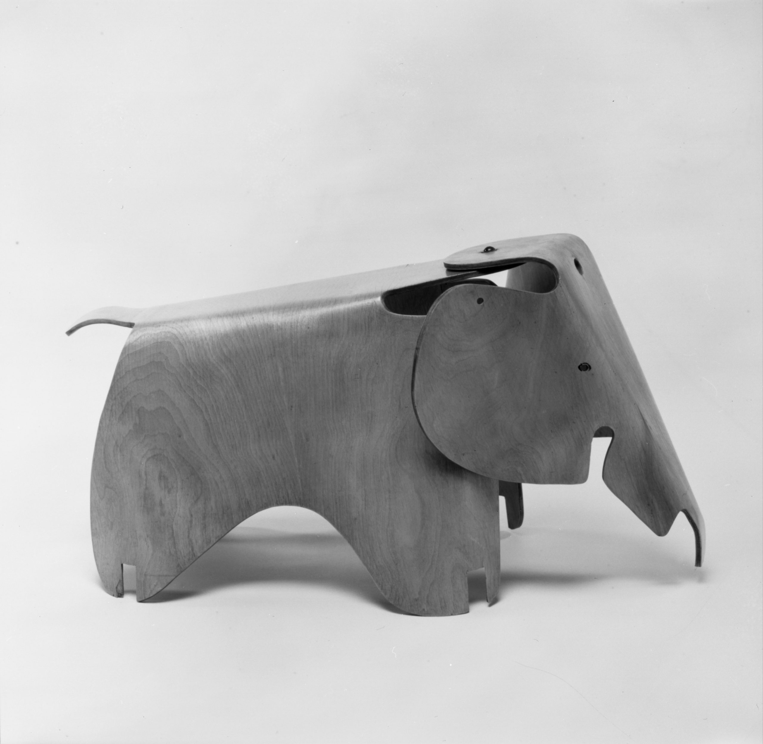 Furniture-making techniques adapted well to the forms of a four-legged animal. And since the animals were smaller items, it was economical for them to experiment with these new anamorphic forms with the equipment already available. It also meant they used less wartime-controlled materials. The animals: bears, horses, frogs, elephants, and seals were intended to be produced from birch plywood allowing a child to sit, play or crawl underneath. The animals could even be nested and stacked.