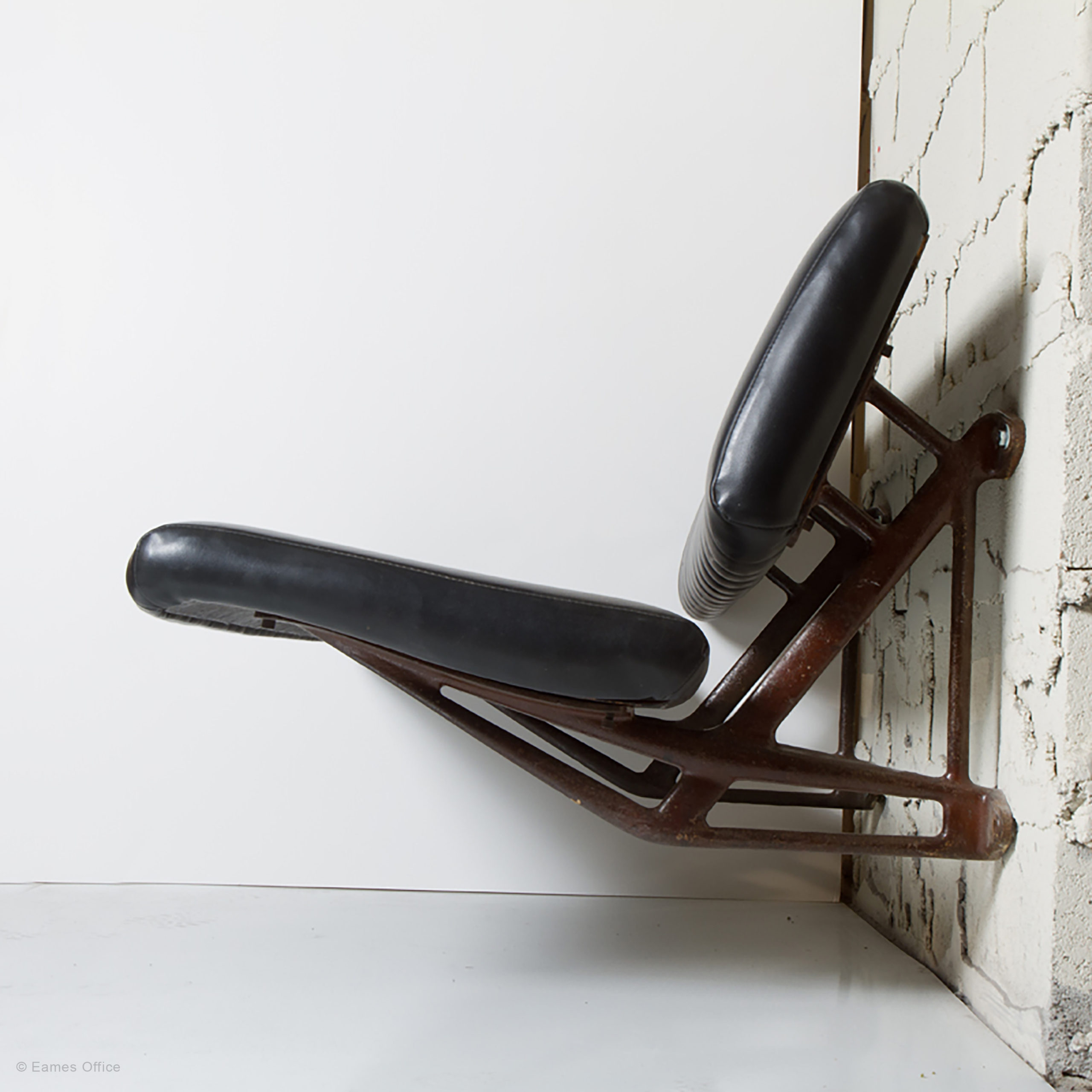 These are the only Eames seating designs created exclusively for outdoor use. The Eames IBM pavilion at the 1964 NYWF was equipped with many of these wall-mounted units. The structural elements relate to the “bridge” structure of the Eames Chaise, with similar volumes, but unlike the Eames Chaise, these were designed only to be used wall-mounted.