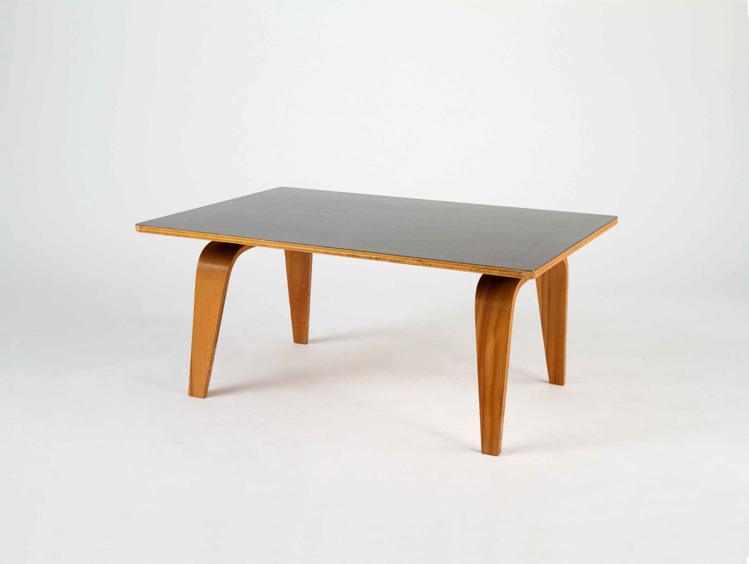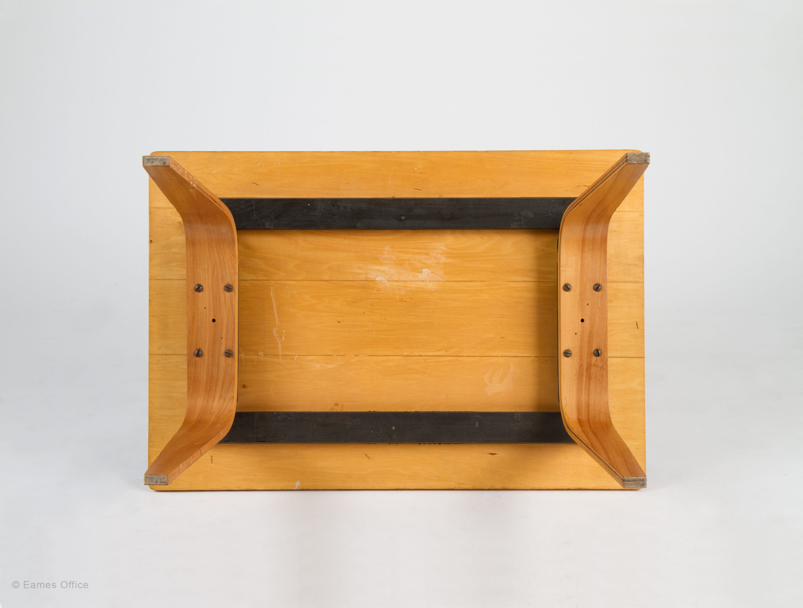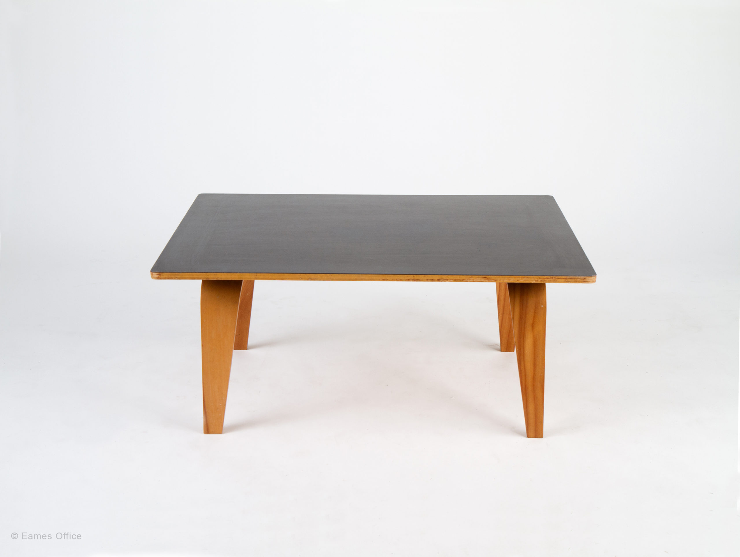 The OTW, or the Eames Rectangular Table, which we now offer in two different lengths, was developed by Charles and Ray as a product of their process of developing their molded plywood chairs. In fact, when they perfected the bent plywood legs for the Eames LCW, they realized that the back legs of the LCW would also work very well as table legs, so each table is set upon four such shaped plywood legs. The tops are sheets of plywood, available in various premium face wood veneers or with plastic laminates. Originally known as “OTW” FOR “Occasional Table Wood,” the name they used in the very earliest sales literature, we now call it the Eames Rectangular Coffee Table.