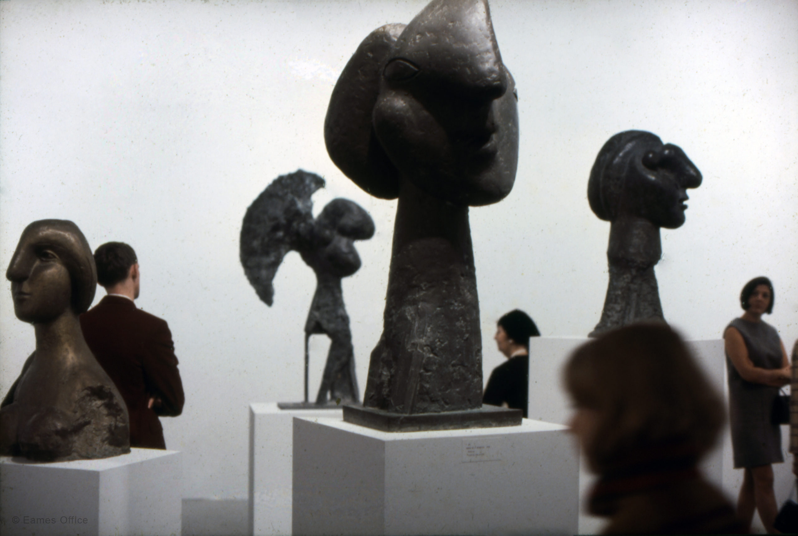The Picasso slide show is another of Charles’s attempts to capture a passing event and preserve its “essence” through photography. Beginning with the 1955 film Textiles and Ornamental Arts of India, these efforts were not intended to be documentary records but instead, to be visual syntheses of the “spirit” of the exhibition experience as seen through Charles’s eyes.