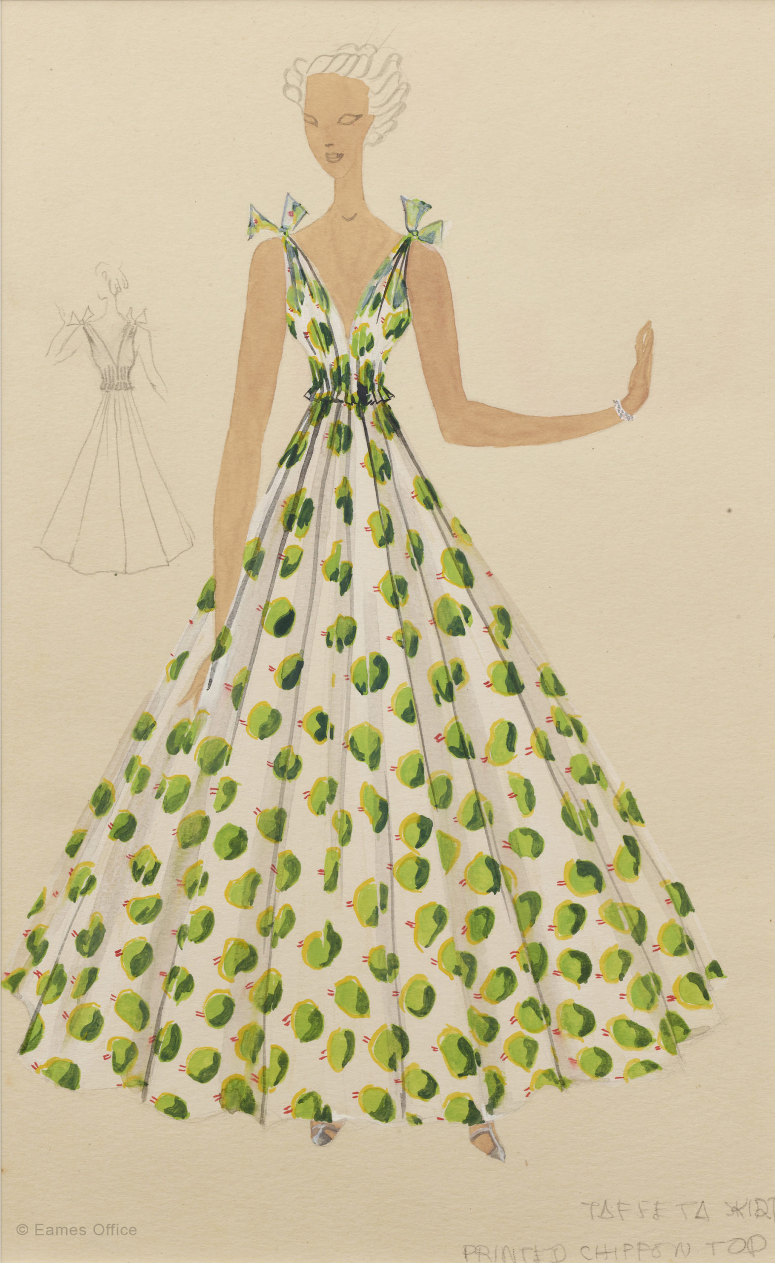 This early hands-on experience with fashion contributed to the Eameses’ later work—not only as an exemplar of their iterative process, but also more literally. She created textiles, clothing for herself and Charles, as well as uniforms for staff members of IBM’s Pavilion during the 1964 New York World’s Fair.
