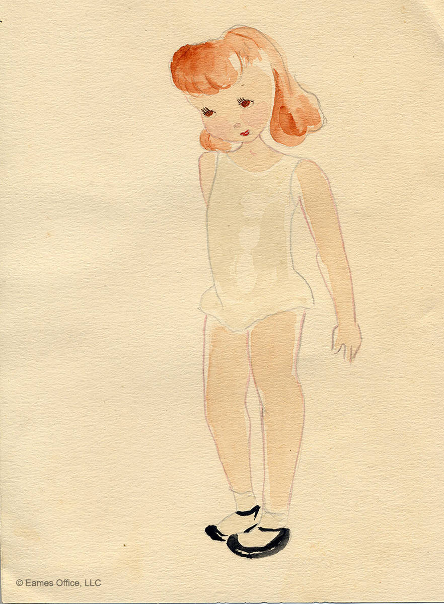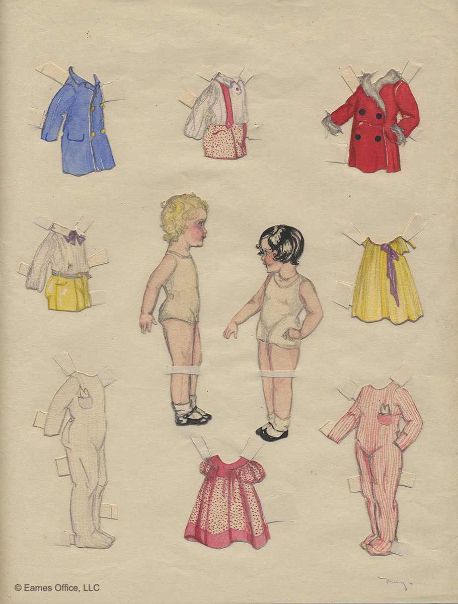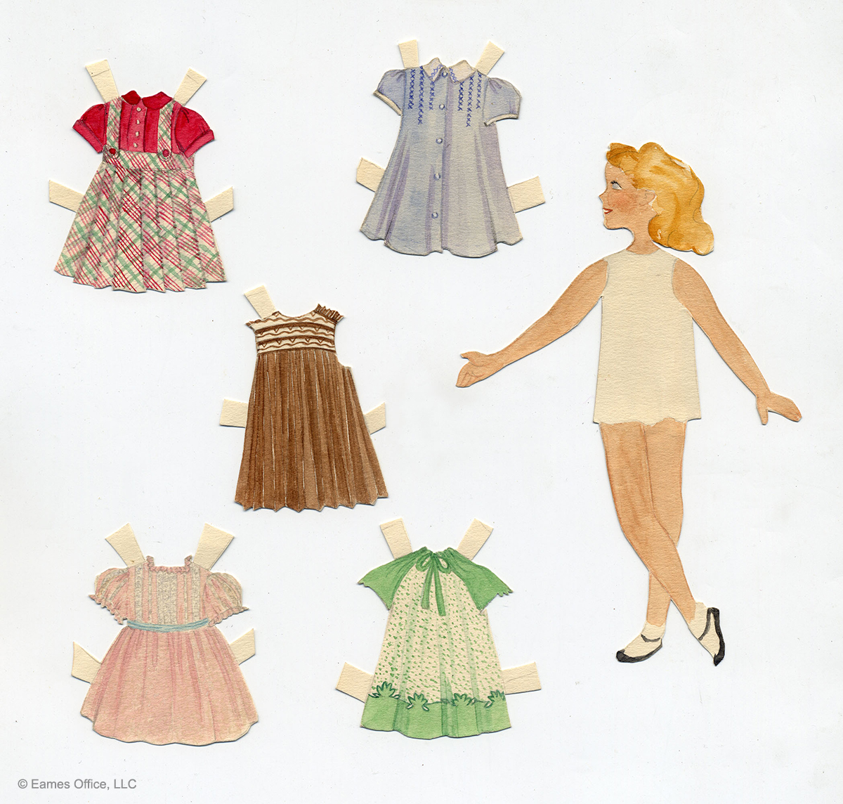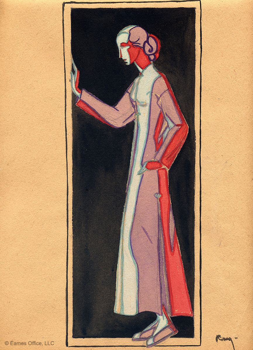 Ray’s early hands-on experience with fashion contributed to the Eames Office’s later work—not only as an exemplar of their iterative process, but also more literally. Ray designed textiles, clothing for herself and Charles, choir robes for a church, and uniforms for staff members of IBM’s Pavilion during the 1964 New York World’s Fair.