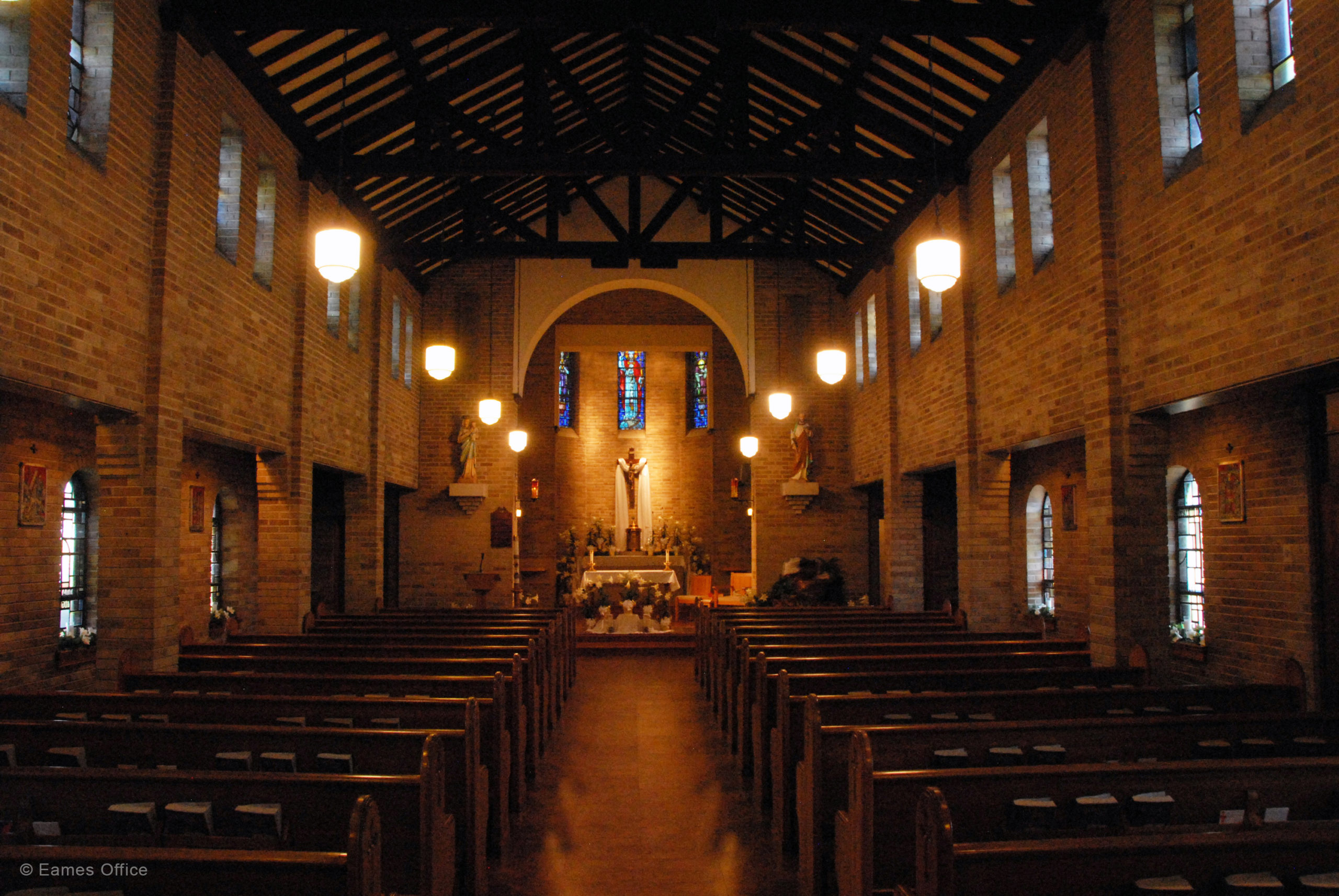 St. Mary’s Catholic Church in Paragould, Arkansas is one of two churches Charles Eames built early in his career. This structure is a modern reinterpretation of Romanesque Revival architecture, a stylistic decision Charles made since it allowed him to fulfill the congregation’s desire for a traditional church within a modest budget.