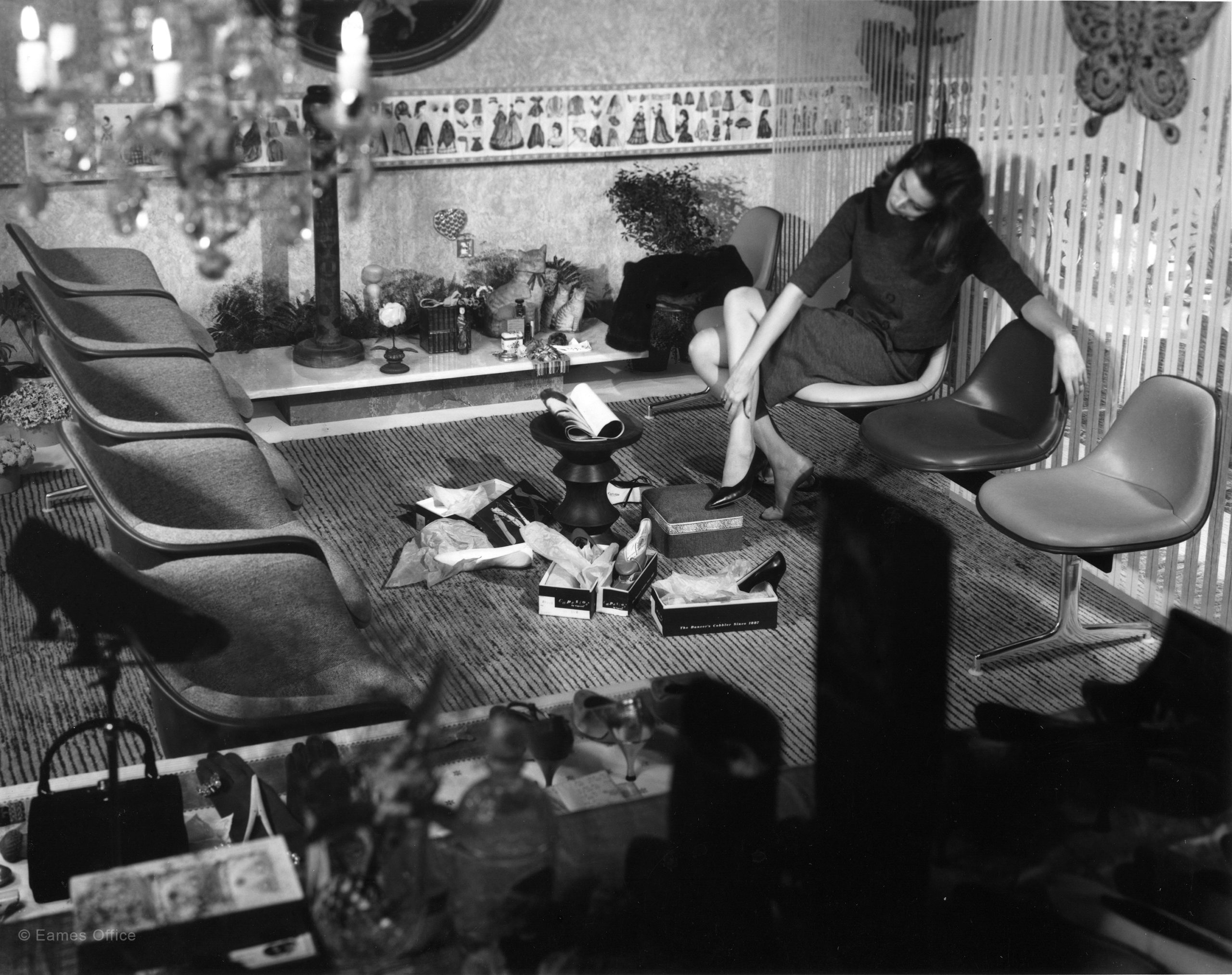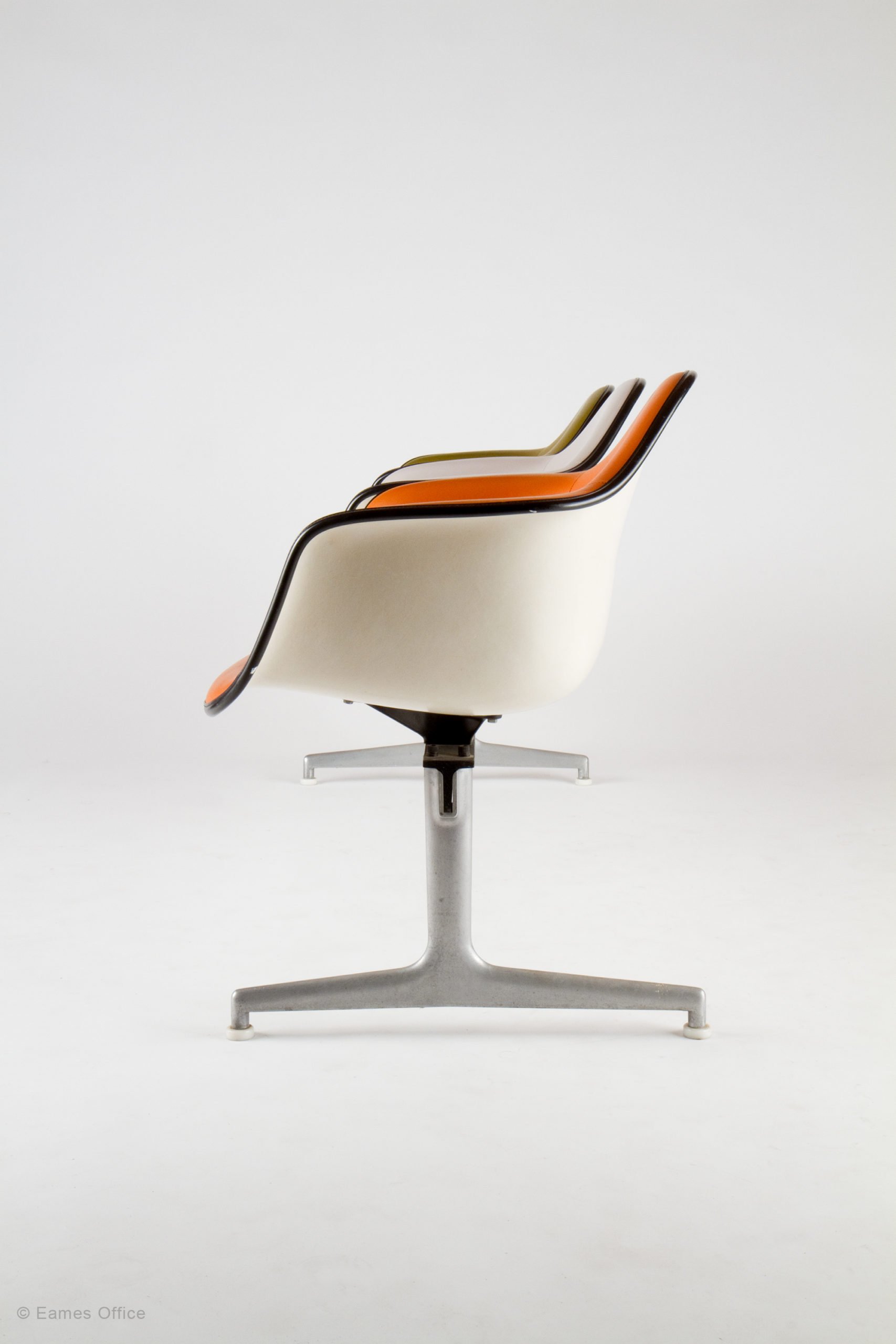 Like the Eames Tandem Sling Seating, the Tandem Shell Seating was designed primarily for public spaces. Either type of seating could help organize space and provide definition. The Eames Tandem Shell Seating was more likely to be found in reception areas of offices or defined spaces in retail stores. For example, two Tandem Shell rows could serve very well as a department store’s shoe department. In the same way as with the Tandem Sling Seating, any of the spots on a Tandem Shell bench could be equipped with a table instead of a chair.