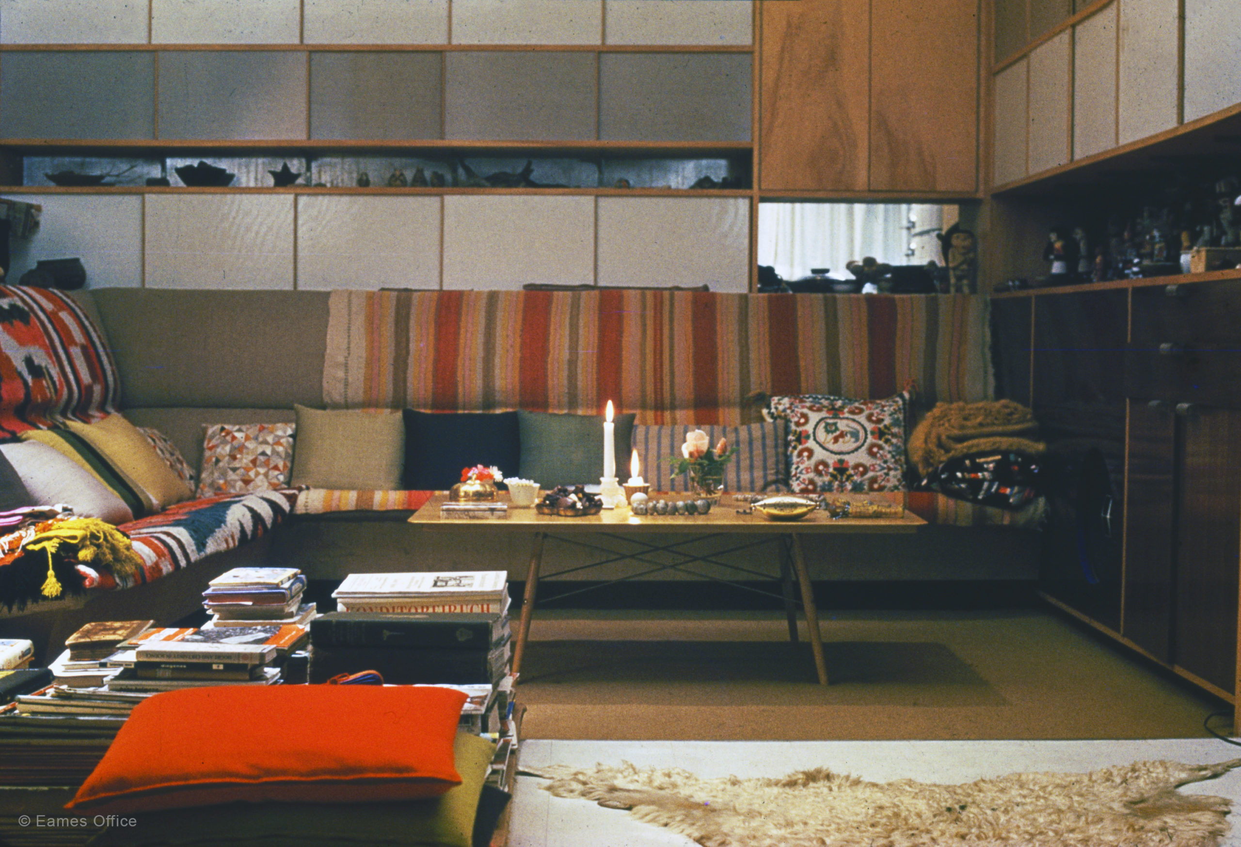 The following two were made for friends of Charles and Ray Eames. Along with a sofa similar to the Eames House Alcove Sofa, Charles and Ray made a similar alcove table for the office of their friend, Twentieth Century Fox Film screenwriter, Phillip Dunne. In addition, they gave Dunne’s table a solid marble top.