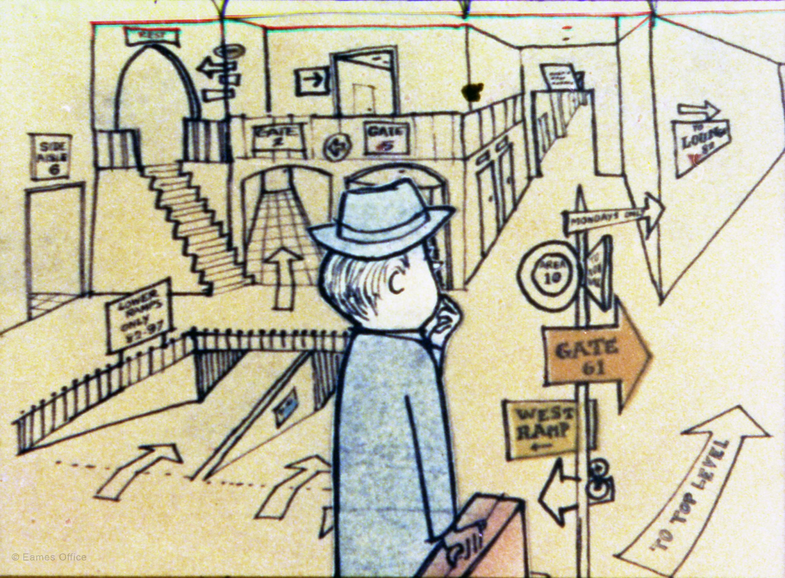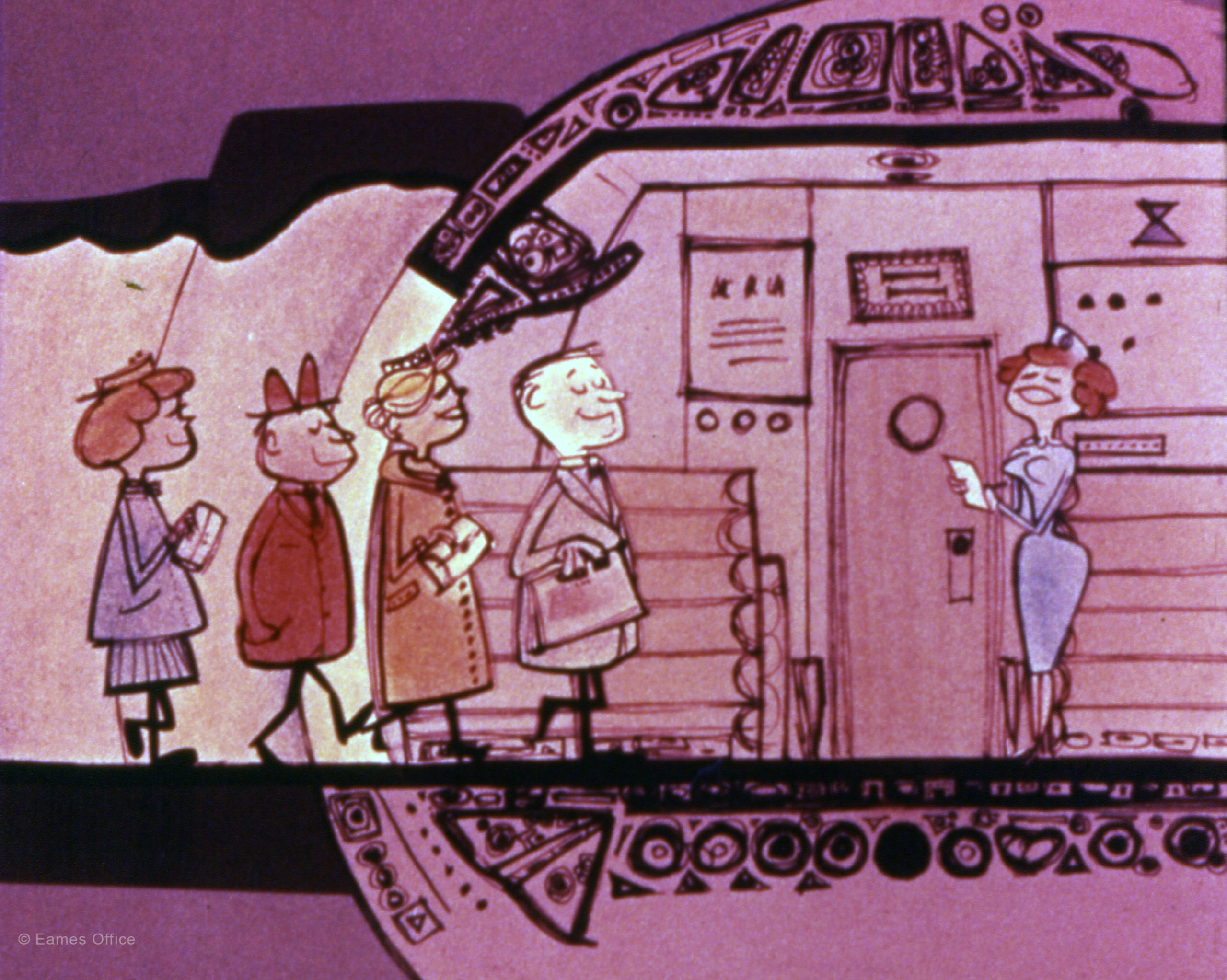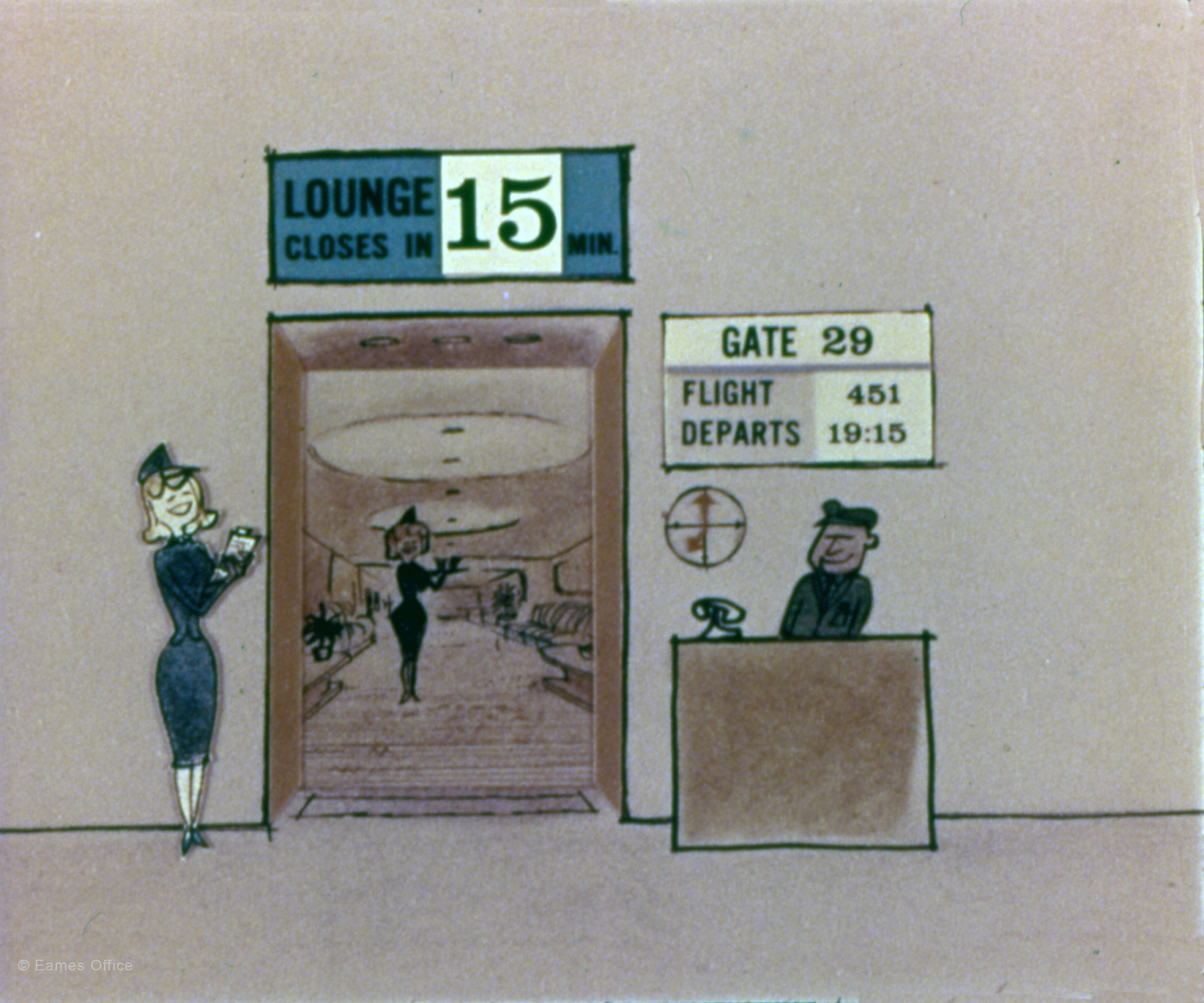 Produced to assist Eames’ friend, architect Eero Saarinen, in presenting his innovative concepts for the new Dulles Airport near Washington DC, the film demonstrates the advantages of the unique design for both the airlines and the public, focusing on increased airport efficiency and the eliminate the passenger’s long walks with heavy luggage.