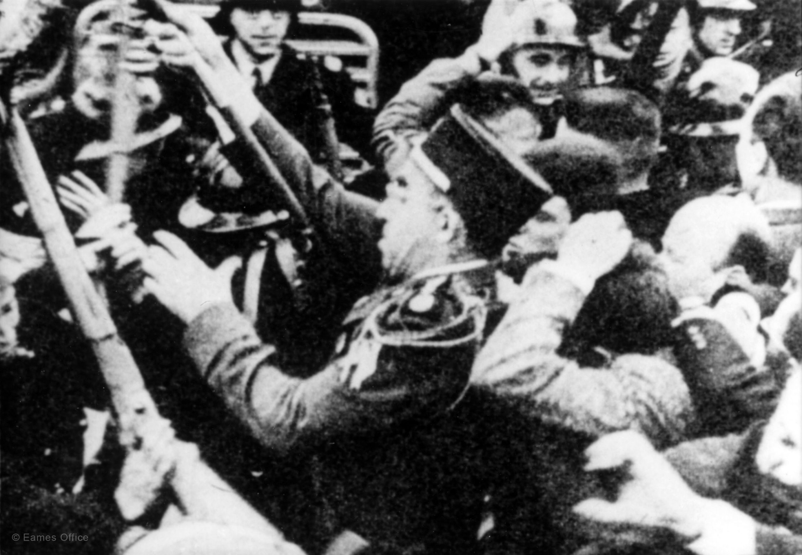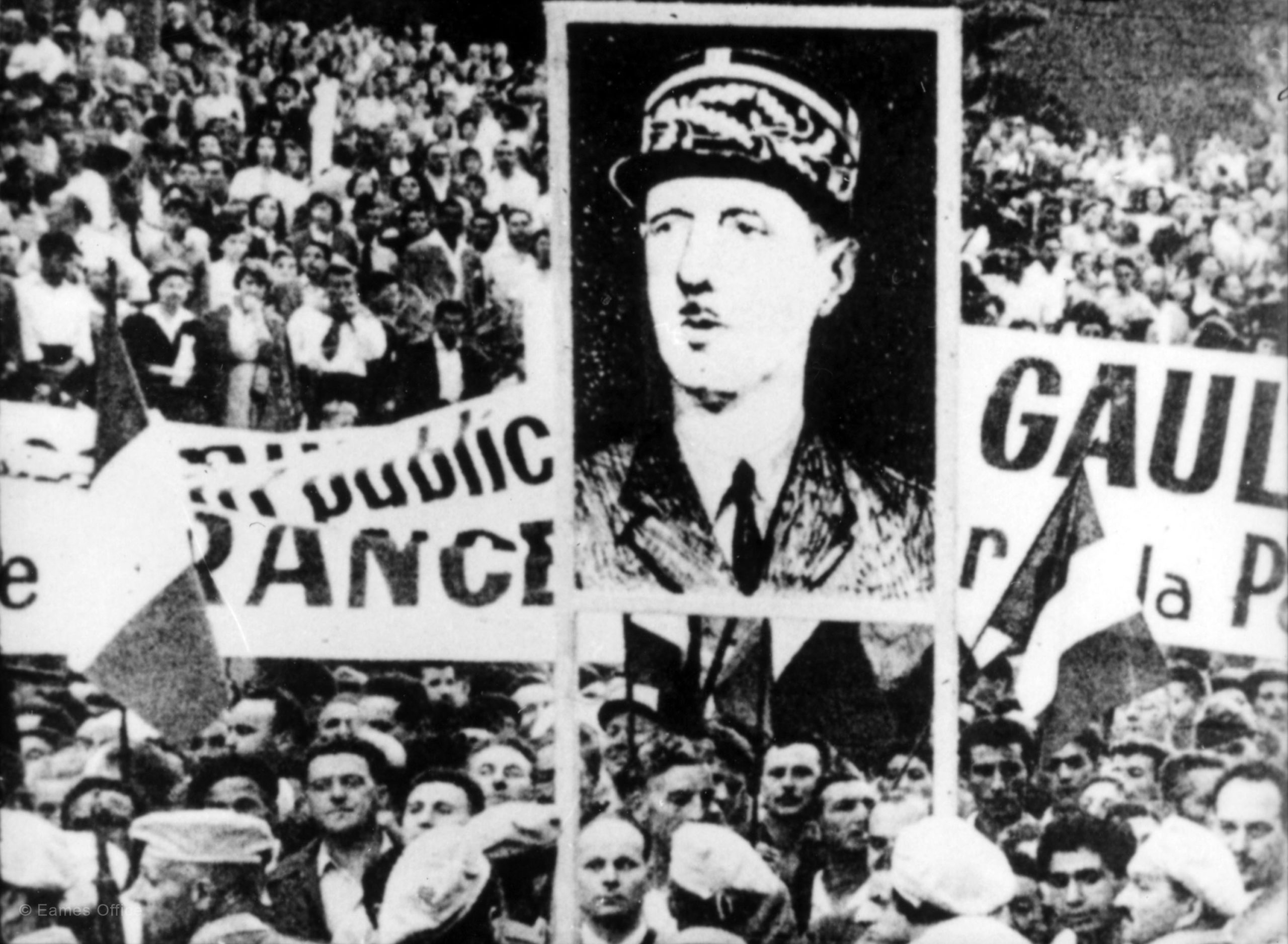 “The Fabulous Fifties” was a television program broadcast on January 22, 1960, on the CBS network. The program produced by Leland Hayward for CBS, recapped the significant events of the 1950s and included six film segments made by the Eames Office. The short film segments, designed as visual interludes to be shown between appearances by celebrity guests (including Julie Andrews, Rex Harrison, Jackie Gleason, Shelley Berman, Elaine May, and Mike Nichols), and made use of animation, live-action, and still photography. Charles and Ray each won an Emmy Award in “Graphics” in 1960 for their work on “The Fabulous Fifties.”