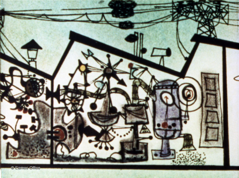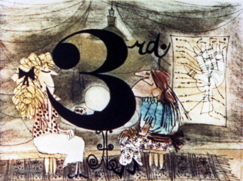 Was produced for the IBM Corporation to be shown in its pavilion at the 1958 Brussels World’s Fair. Intended as an introduction to the electronic computer, the film uses animation to depict the computer as the culmination of centuries of tools and systems man has developed to process information. For the information Machine film Charles synthesized and extended the concepts of information theory he presented in his 1953 film A Communications Primer and explored how humans have gone about the process of solving problems before and after the advert of the electronic computer. The story of the human need to process and communicate larger and more complex amounts of information is depicted in animated sequences in which people learn to manipulate abstractions with increasing sophistication and skill. The Information Machine was the first completely animated film produced by the Eames Office. It was also their first commissioned by a client (Eliot Noyes, then design director for IBM, brought the project to the office)