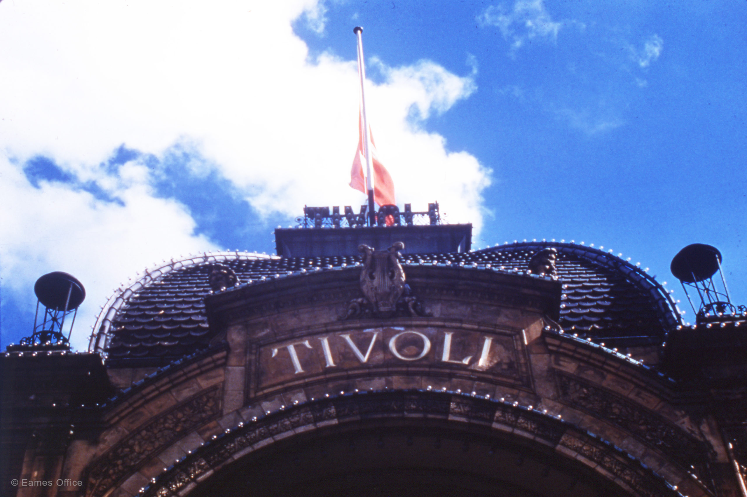 A ninety-two image, single-screen slide show, was composed of photographs shot during a visit by Charles and Ray to Tivoli Gardens in Copenhagen, Denmark, on the first day of the garden’s annual spring opening in 1959.