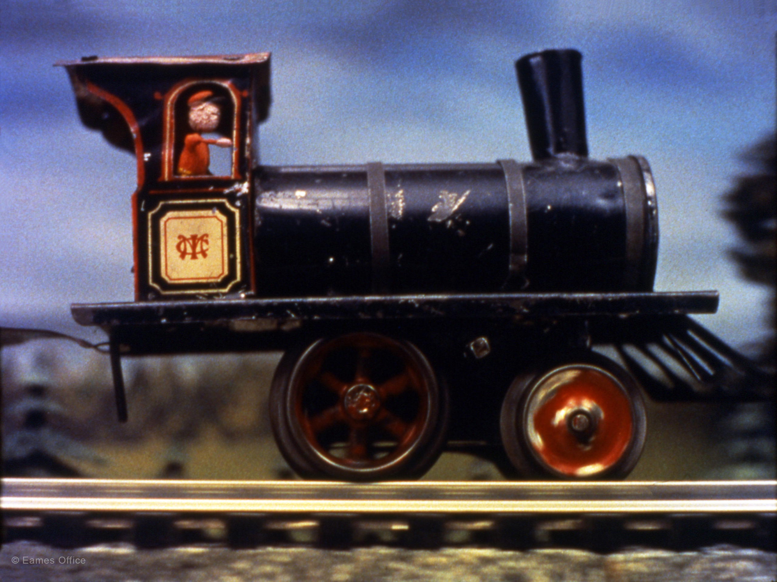 This film delves into the world of toy trains, which Charles loved long after boyhood. The work features toy trains of various vintages, styles, sizes, and materials to tell the simple story of a journey; it starts in a rail yard, continues to the countryside, moves through villages, and culminates at a station.
