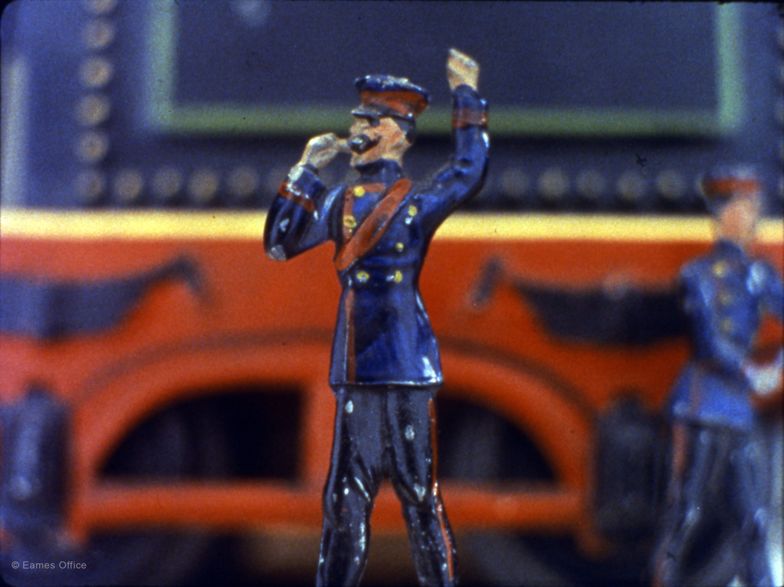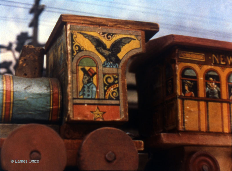 Charles wrote and narrated the opening to the film. He explains that, “In a good old toy there is apt to be nothing self-conscious about the use of materials. What is wood is wood; what is tin is tin; and what is cast is beautifully cast . . . It is possible that somewhere in all this is a clue to what sets the creative climate of any time, including our own.”