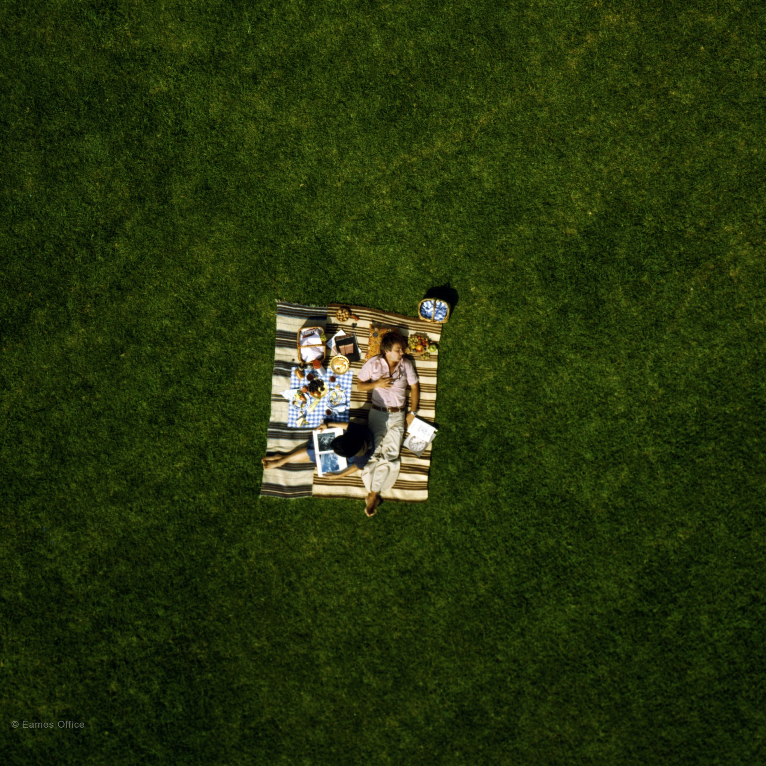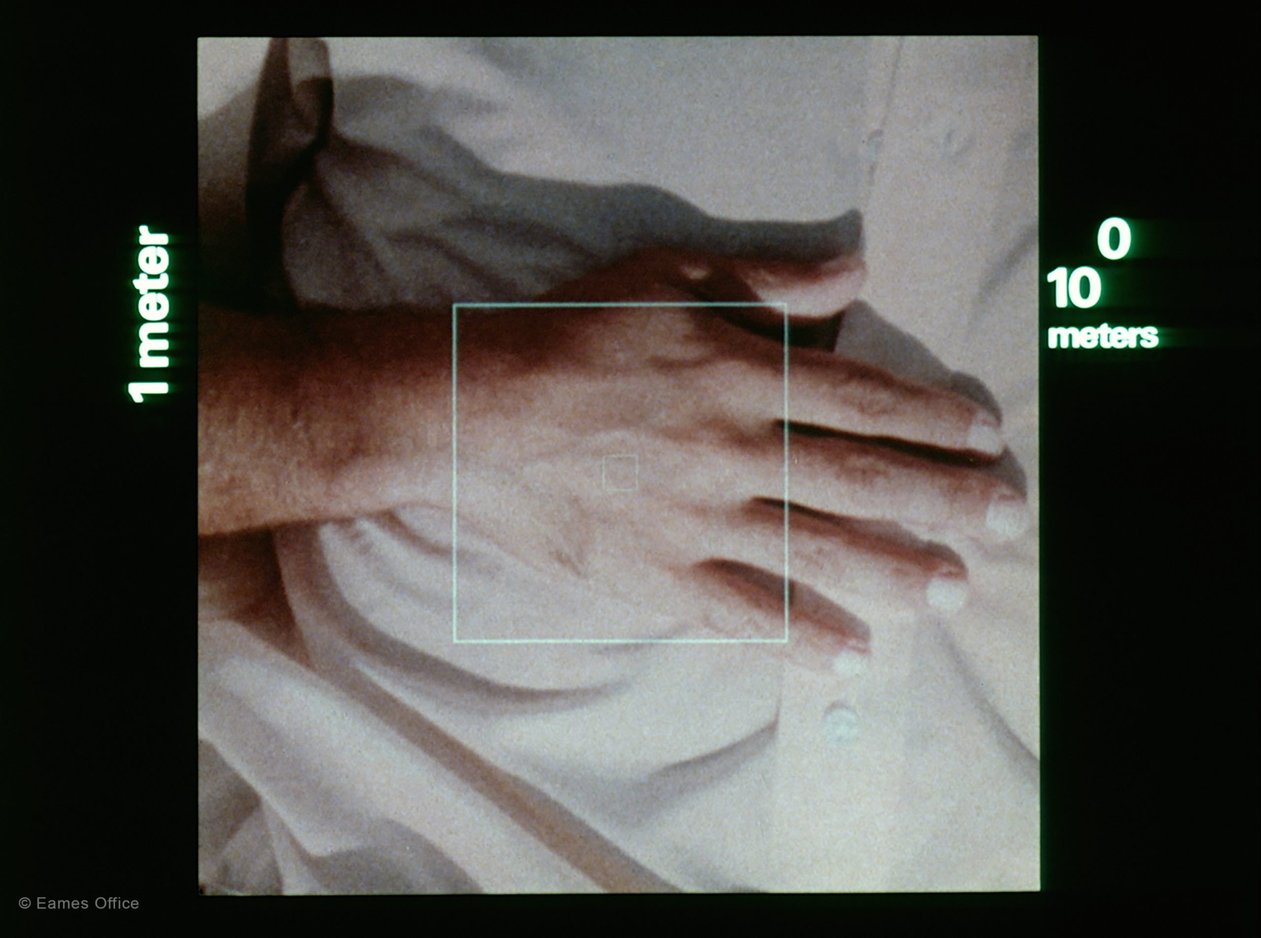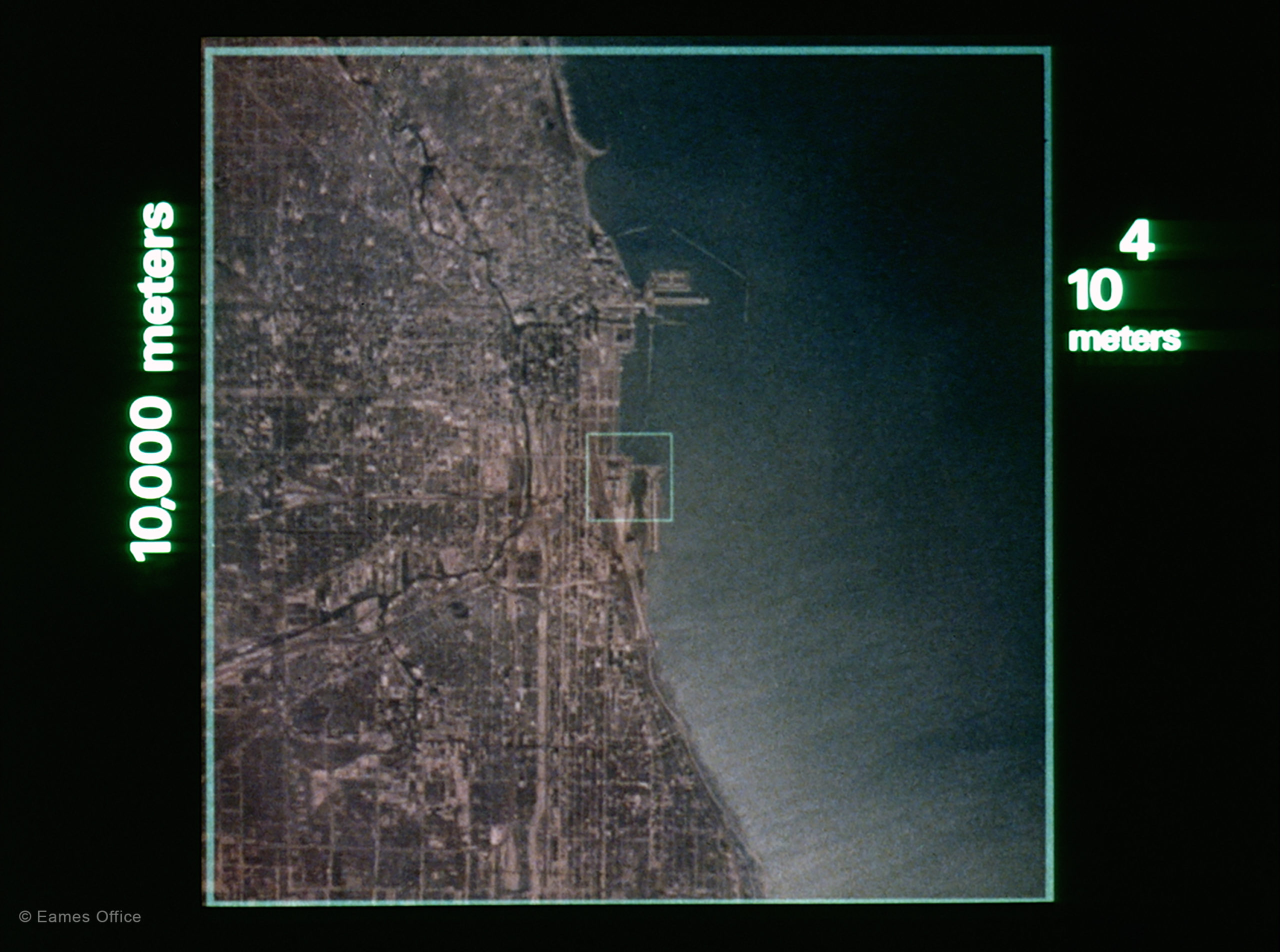 Powers of Ten is one of the Eameses’ best-known films. Since it was produced in 1977, it has been seen by millions of people both nationally and internationally. As with A Communication Primer and 2n (a 2-minute Peep Show from the exhibition, Mathematica), in this film, Charles and Ray employed the system of exponential powers to visualize the importance of scale.
