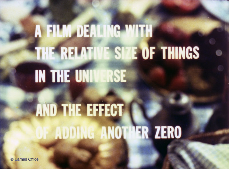 When the Eameses came across the 1957 book by Kees Boeke, Cosmic View: The Universe in Forty Jumps, they decided to use it as the basis of a film investigating the relative size of things and the significance of adding a zero to any number.