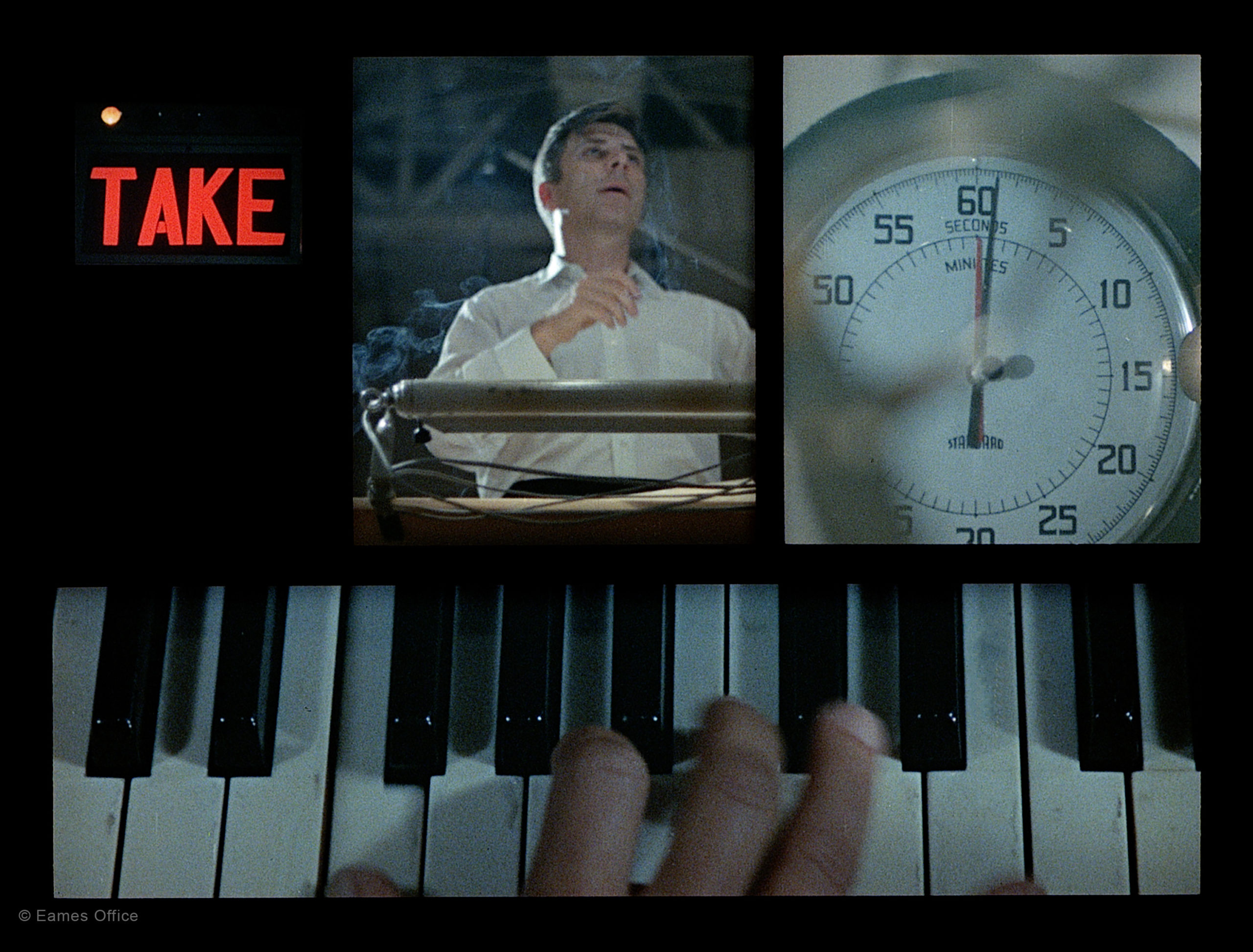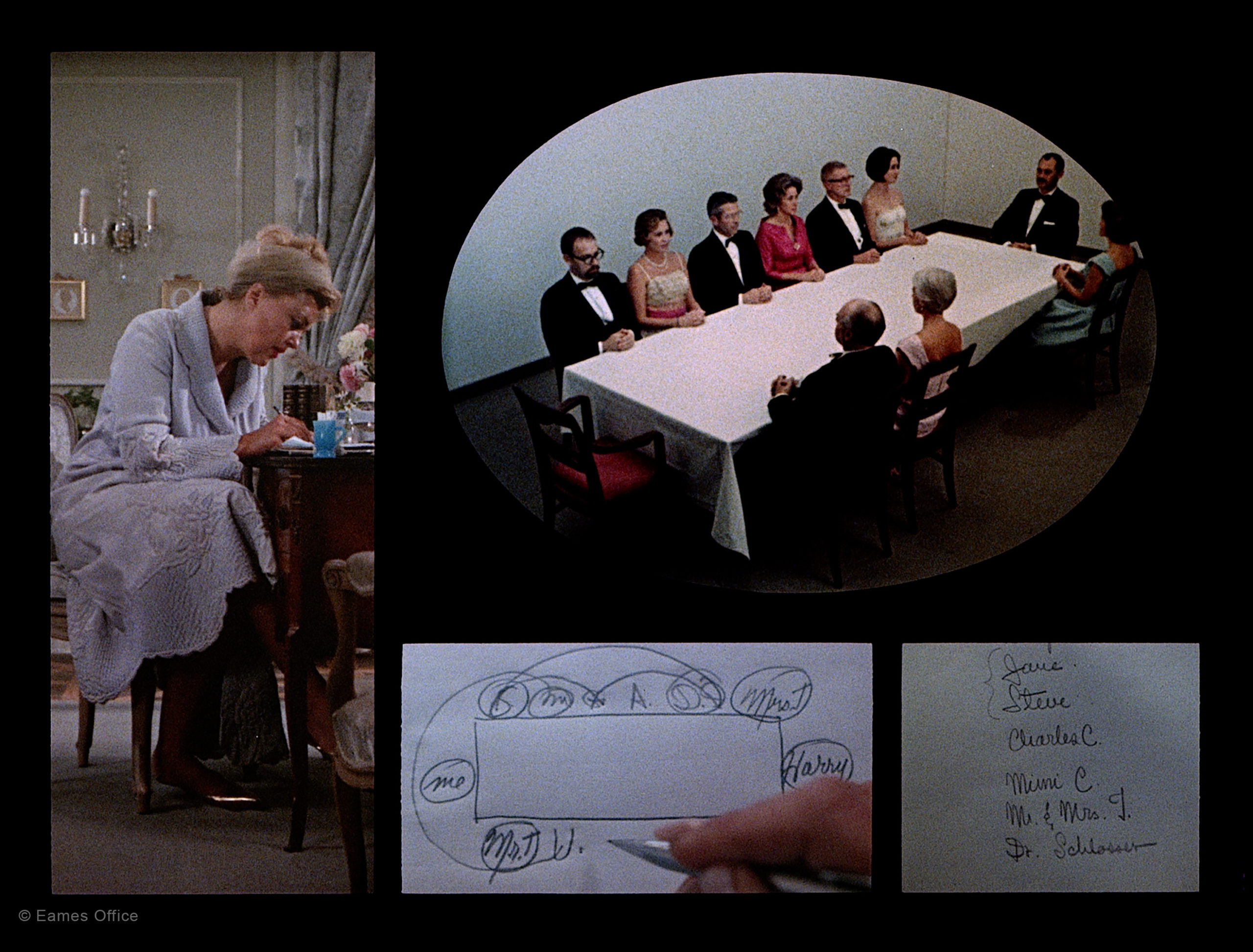 The subject of problem solving begins with an explanation of what the Eameses called “the information machine, “a device for presenting information in fragments so that viewers are compelled to see new relationships among events, objects and people.” The narrative accompanying the images points out the relationships between solving both simple and complicated problems, and then demonstrates that complex problems are solved by the computer with the same logical procedures that people use to solve simple ones. Los Angeles International Film Exposition (Filmex) Acknowledgement of participation, 1973. Music by Elmer Bernstein.